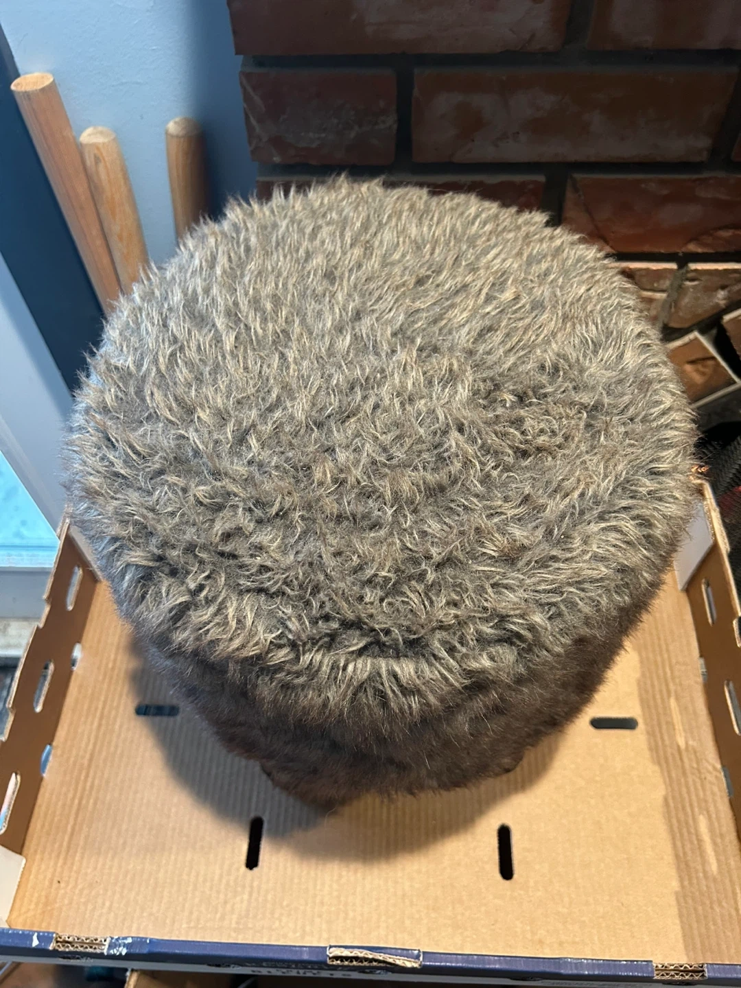 Add a touch of cozy charm to your space with this faux fur ottoman footstool! This used ottoman features a soft, furry top and sturdy wooden legs, perfect for resting your feet or as a stylish accent piece. I'm estimating its value to be around $40 based on similar listings. Who knows what adventures this ottoman has seen? Maybe it's dreamt of being a bear in a past life! But rest assured, if this ad is still up, the ottoman is still available and ready for a new home.