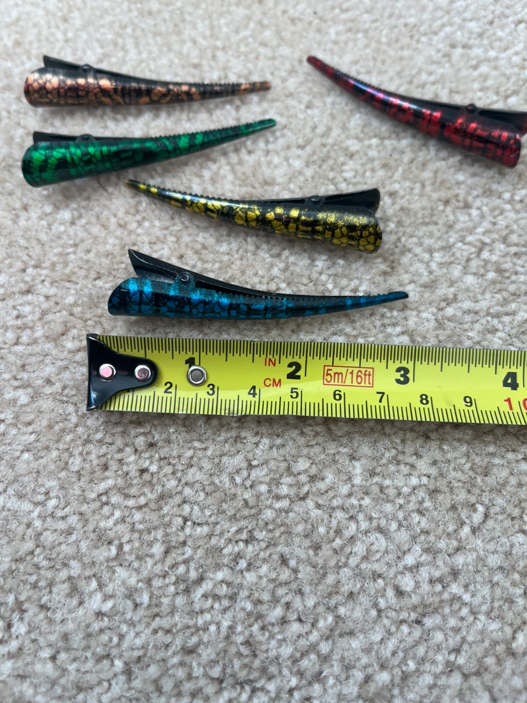 This set includes six alligator hair clips in various colours. These clips are useful for sectioning hair during styling or cutting.