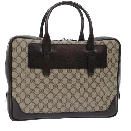 GUCCI GG Canvas Hand Bag PVC Leather Beige 101666 Auth yk8422