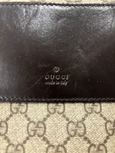 The GUCCI GG Canvas Hand Bag in Beige is a stylish addition to any woman's wardrobe. Made in Italy with high-quality canvas and PVC leather, this authentic designer handbag features the iconic Gucci GG pattern. The spacious interior is perfect for carrying all your essentials, while the classic design and neutral colour make it versatile for any outfit or occasion. Add a touch of luxury to your look with this chic Gucci handbag.