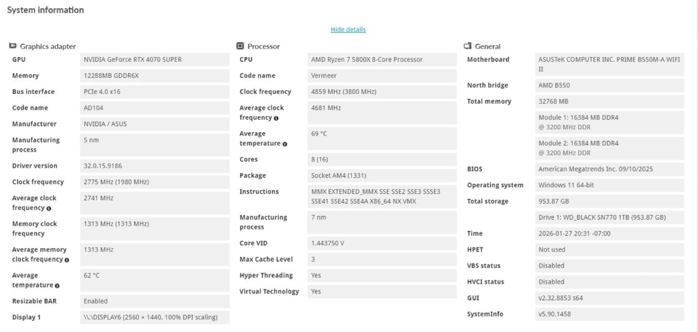 • GPU: ASUS Prime RTX 4070 Super OC