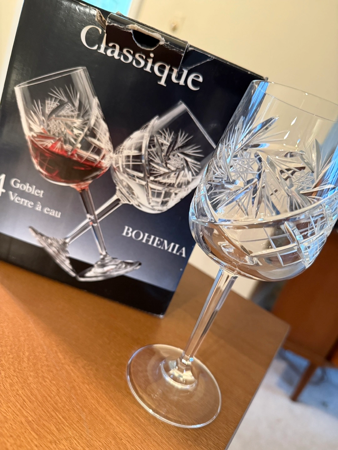 Set of four goblets. Cut crystal with a classic design. Excellent condition. Brand new at 59.99