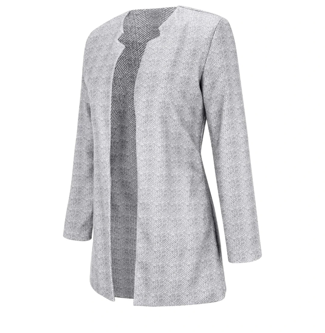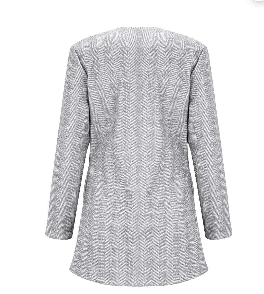 Selling a stylish blazer with a gray herringbone pattern. It's perfect for adding a touch of sophistication to any outfit!