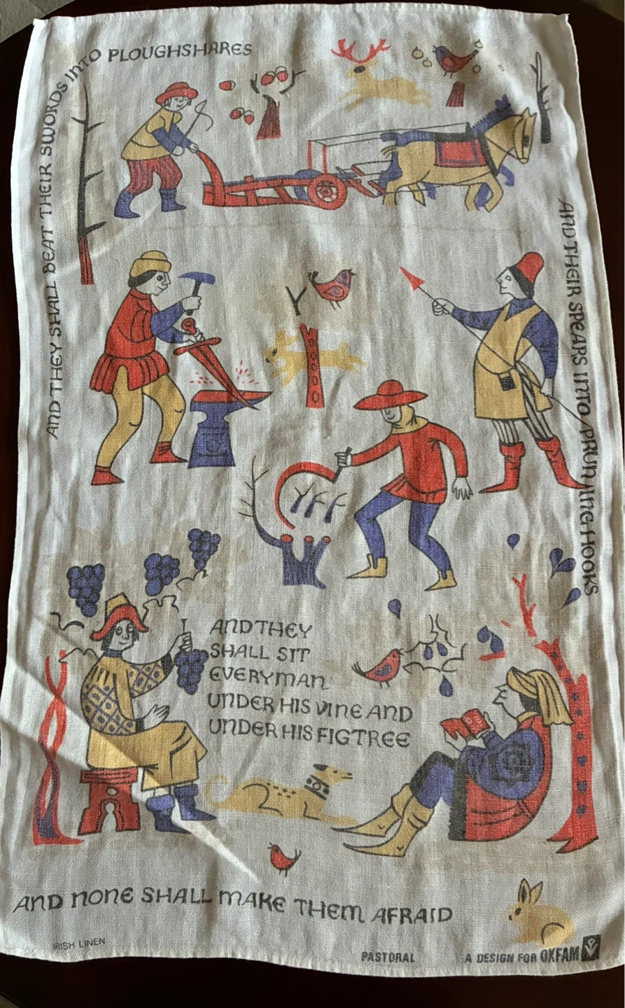 $5 Vintage iris linen tea towel 1960s 1970s oxfam peace