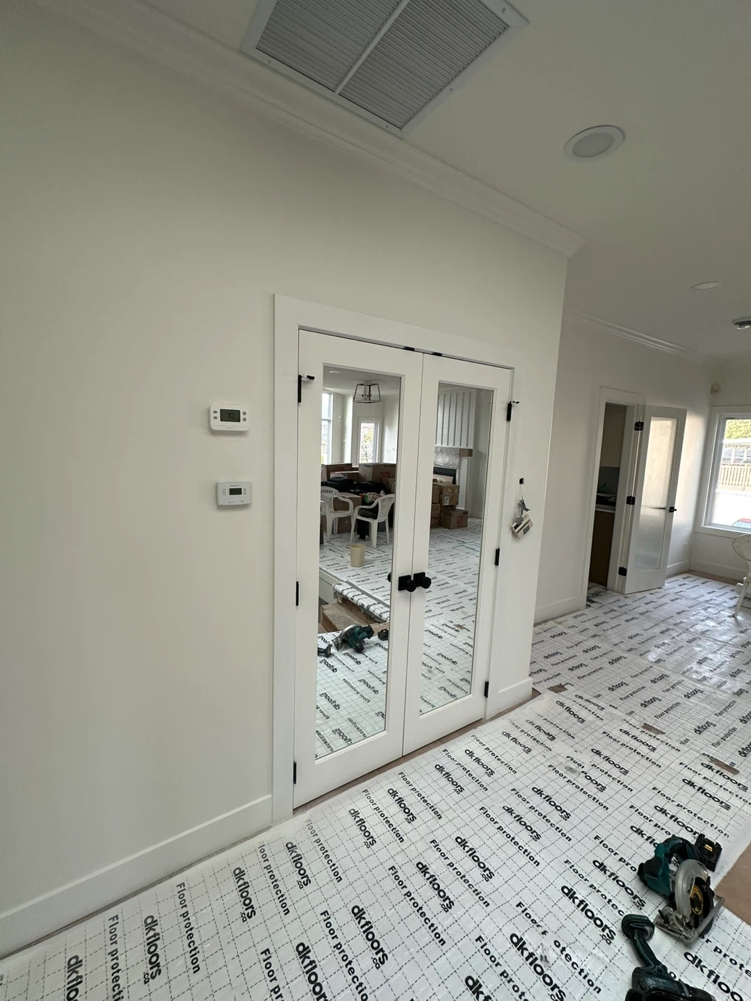 A selection of interior and exterior doors are available for your home. This includes white paneled interior doors, a modern wooden exterior door, and double glass doors. Installation available as well. Thank you