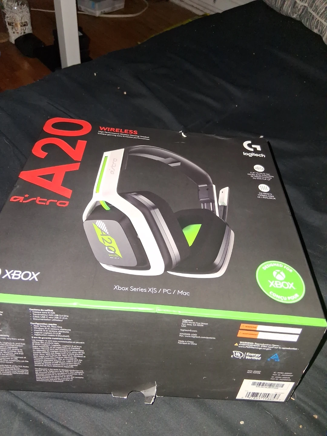 This is the Astro A20 wireless gaming headset. It's designed for Xbox Series X|S, PC, and Mac. This headset includes the original box and packaging.