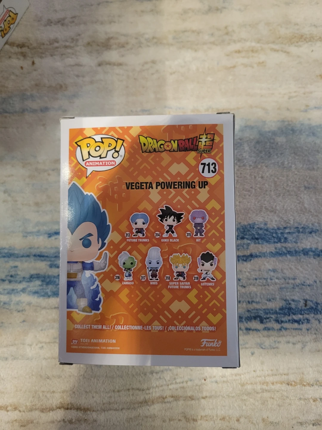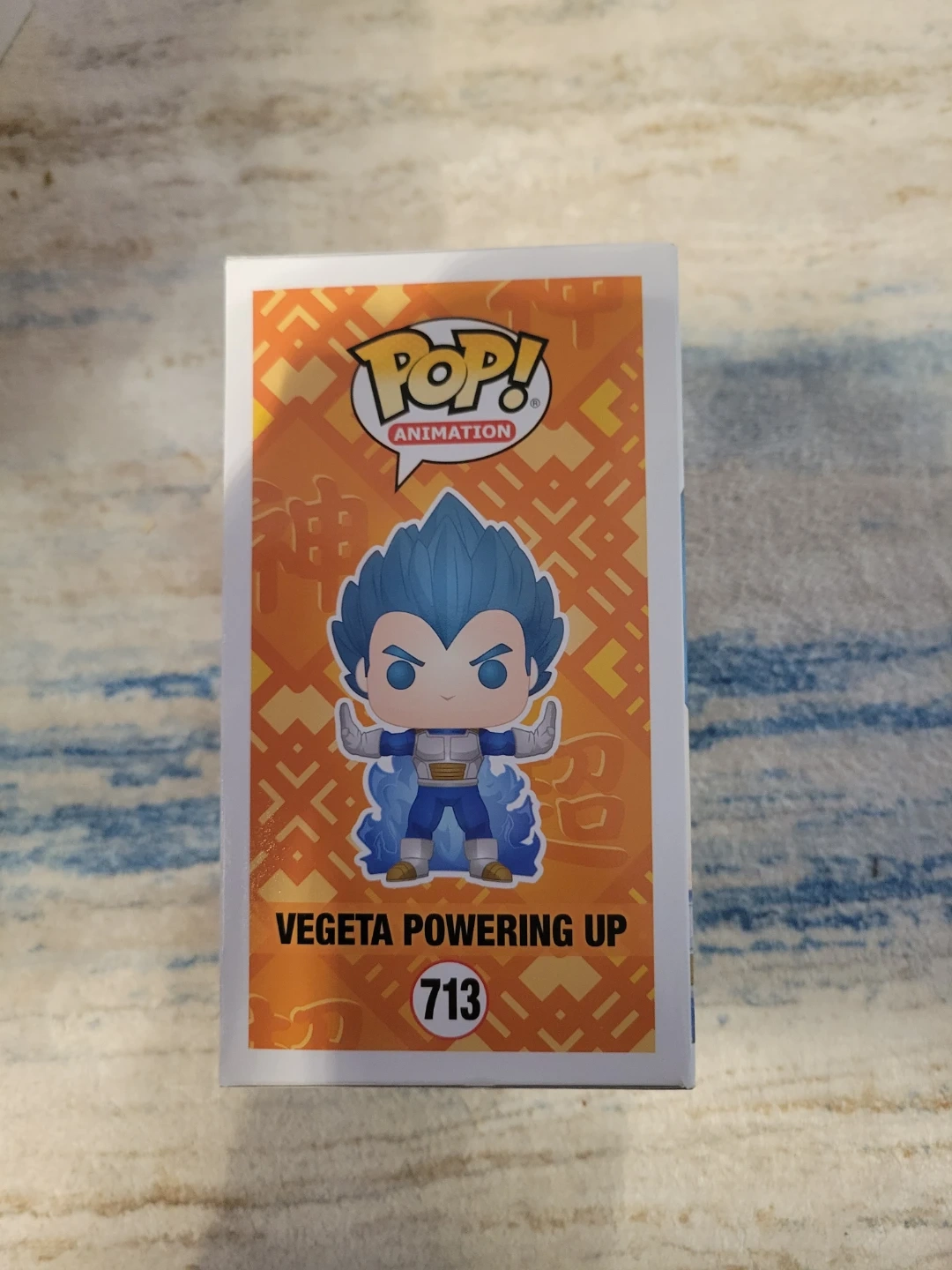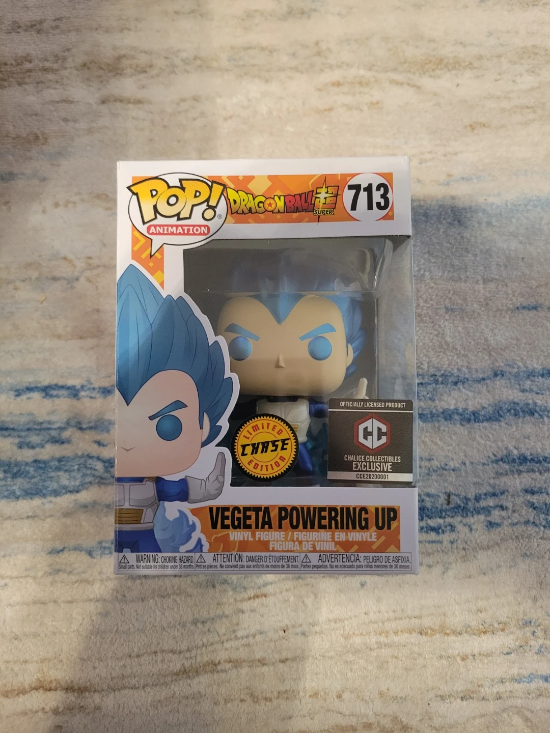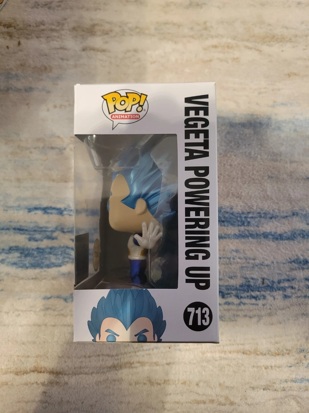 This is a Funko Pop! Animation vinyl figure of Vegeta Powering Up from Dragon Ball Super. It's number 713 in the collection and is a limited chase edition. The figure comes in its original box.