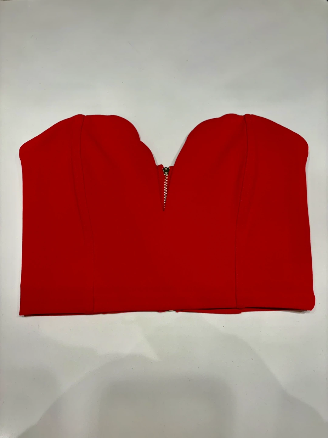 This Dynamite strapless corset top is a vibrant hot pink colour. It's a size medium with a front zipper closure. This top's structured design makes it a stylish addition to any outfit!