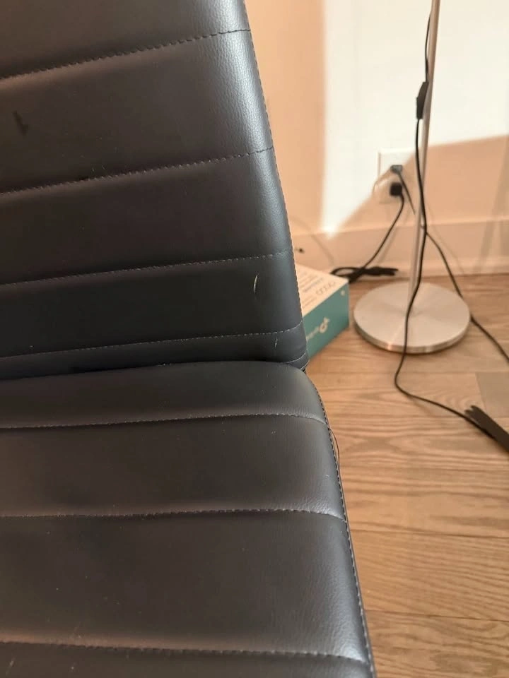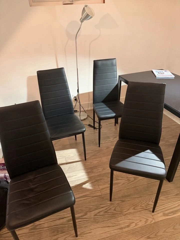 Used dining table with four chairs. Table is in good condition with minor surface scratches that are hard to see. Chairs are OK, one had a slash or two in it (Pictured). Dimensions of the table are: H: 75 CM, W: 70 CM, L: 120CM. Pick up is near Dufferin and Rogers Road.