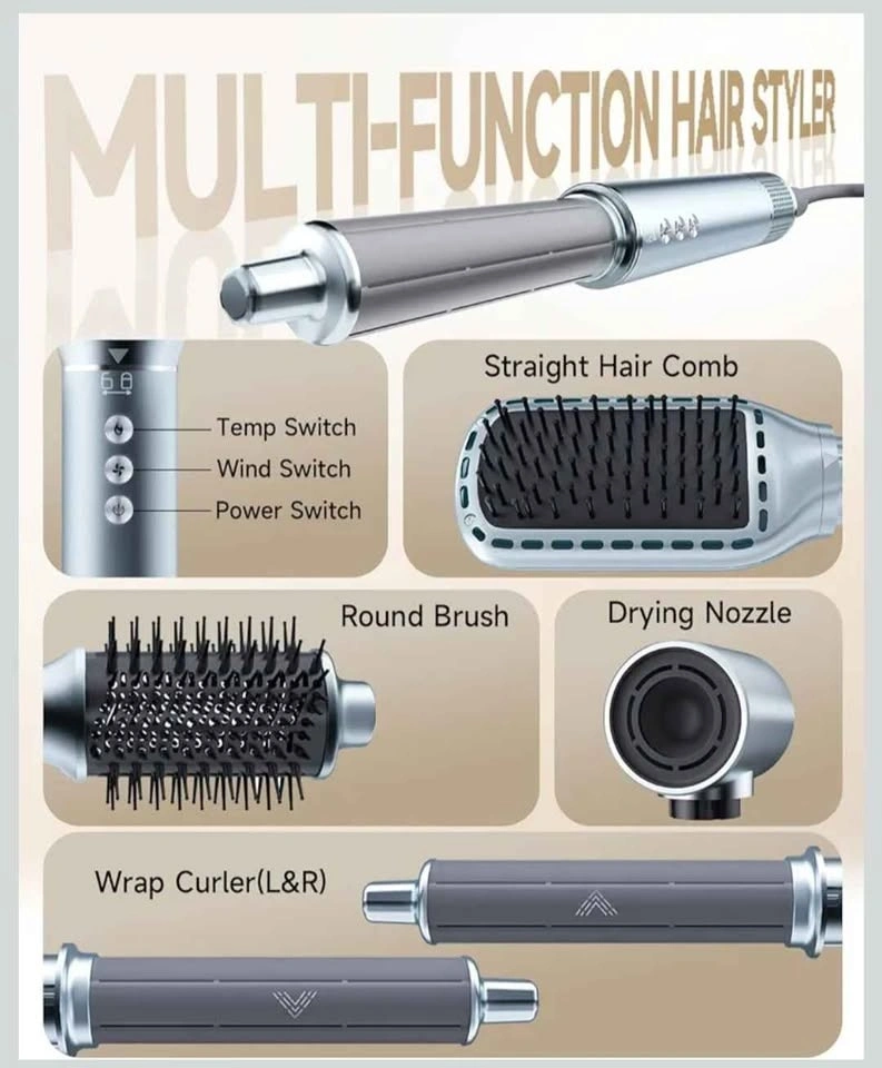 All-in-1 Hair Styling Tool - Blow Dryer, Curler, Brush
