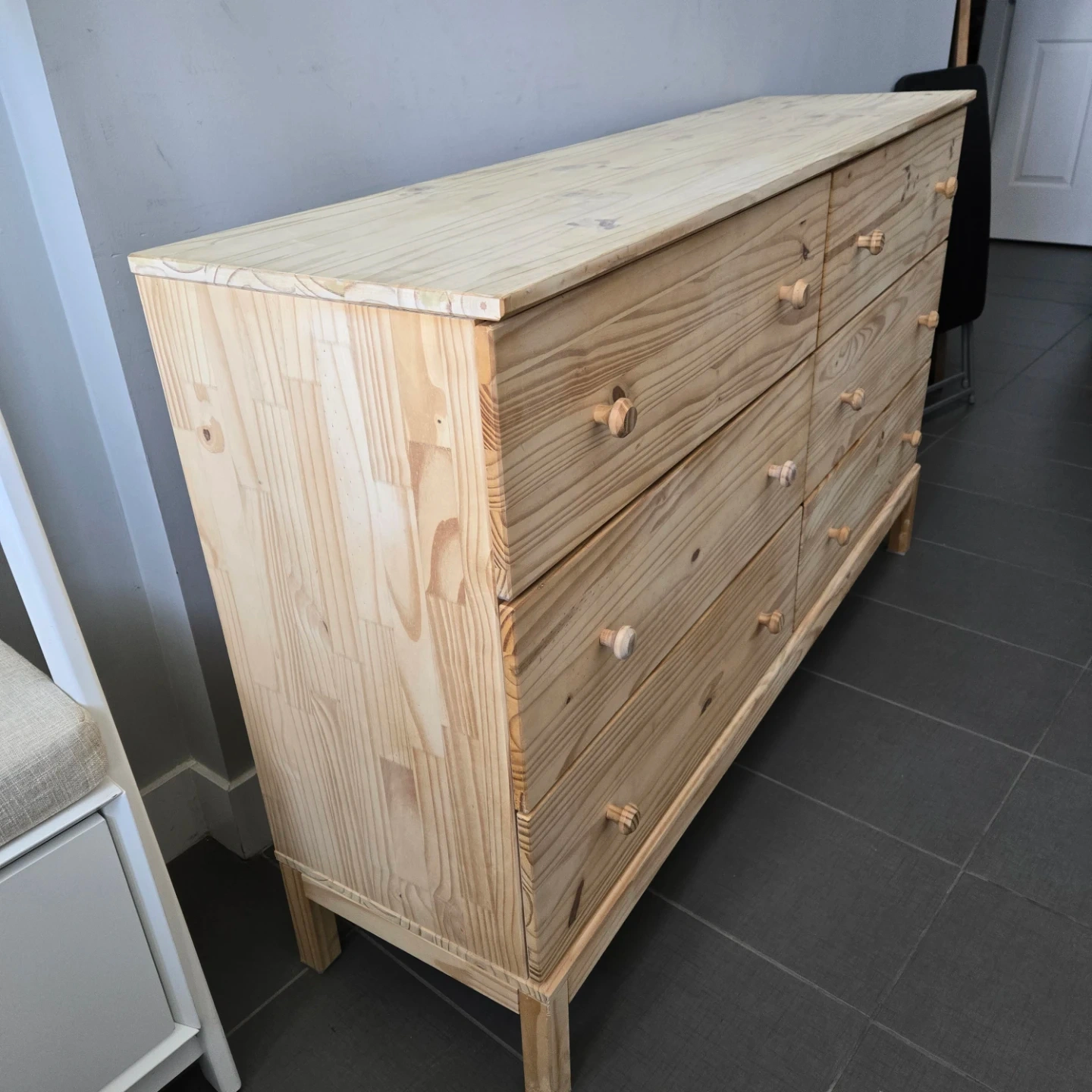 Ive sanded the entire frame and the drawer fronts of this ikea tarva dresser. The top surface is smooth, excellent for repainting or staining.