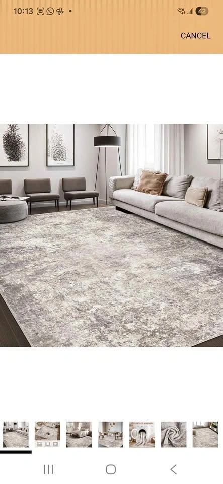 Brand new large abstract area rug for your living room, bedroom, dining room, or home office. Neutral modern design with a soft, low pile. Measures 8x10 feet. From a pet-free and smoke-free home. Needs to be gone ASAP.