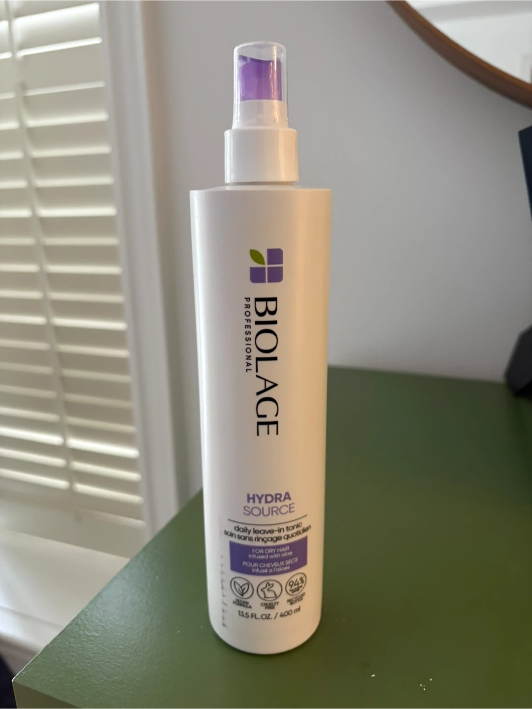 Selling a Biolage Hydra Source daily leave-in tonic for dry hair. It comes in a 13.5 fl oz / 400 ml bottle. Biolage is approved as cruelty free under the Leaping Bunny Programme