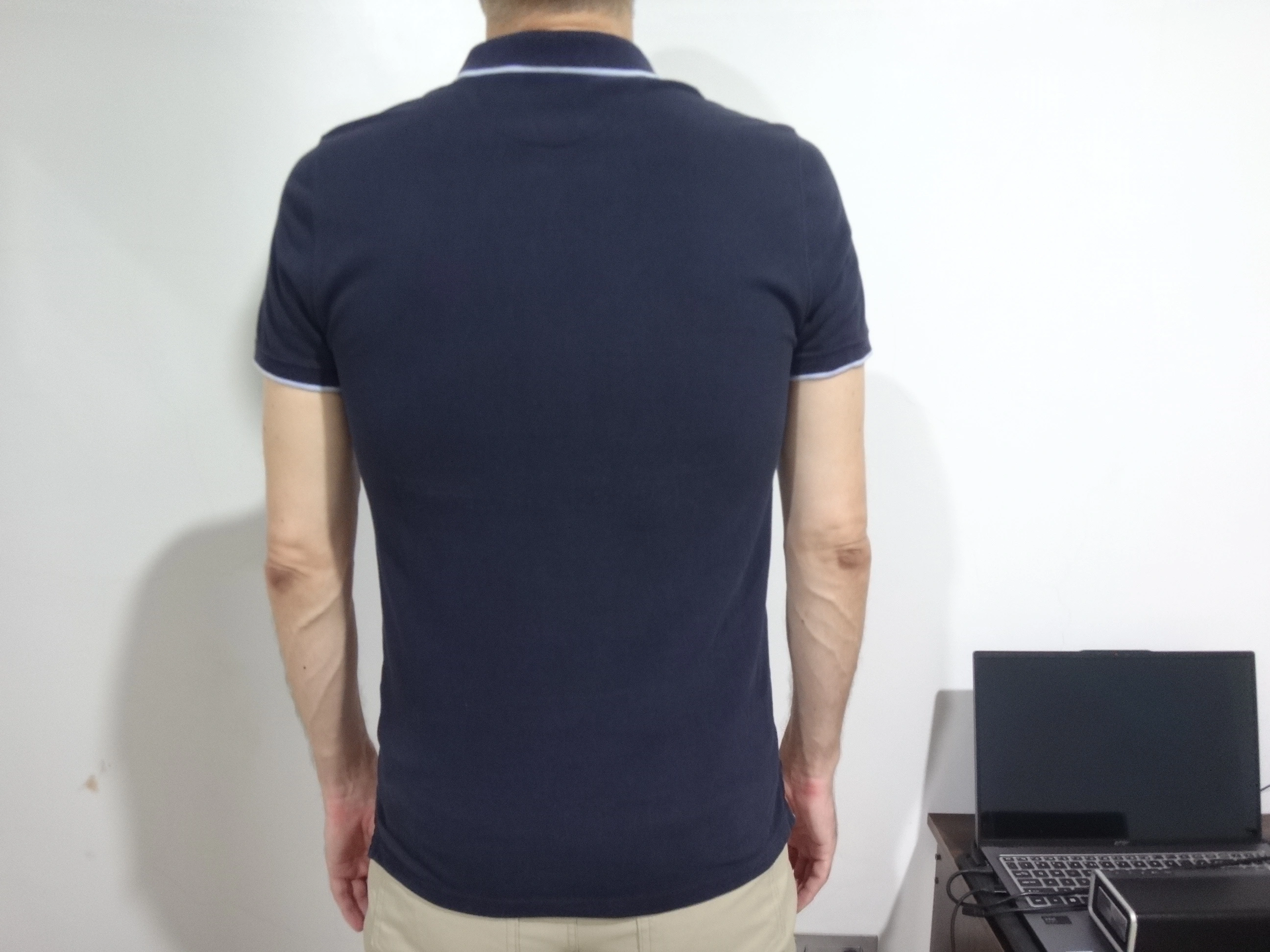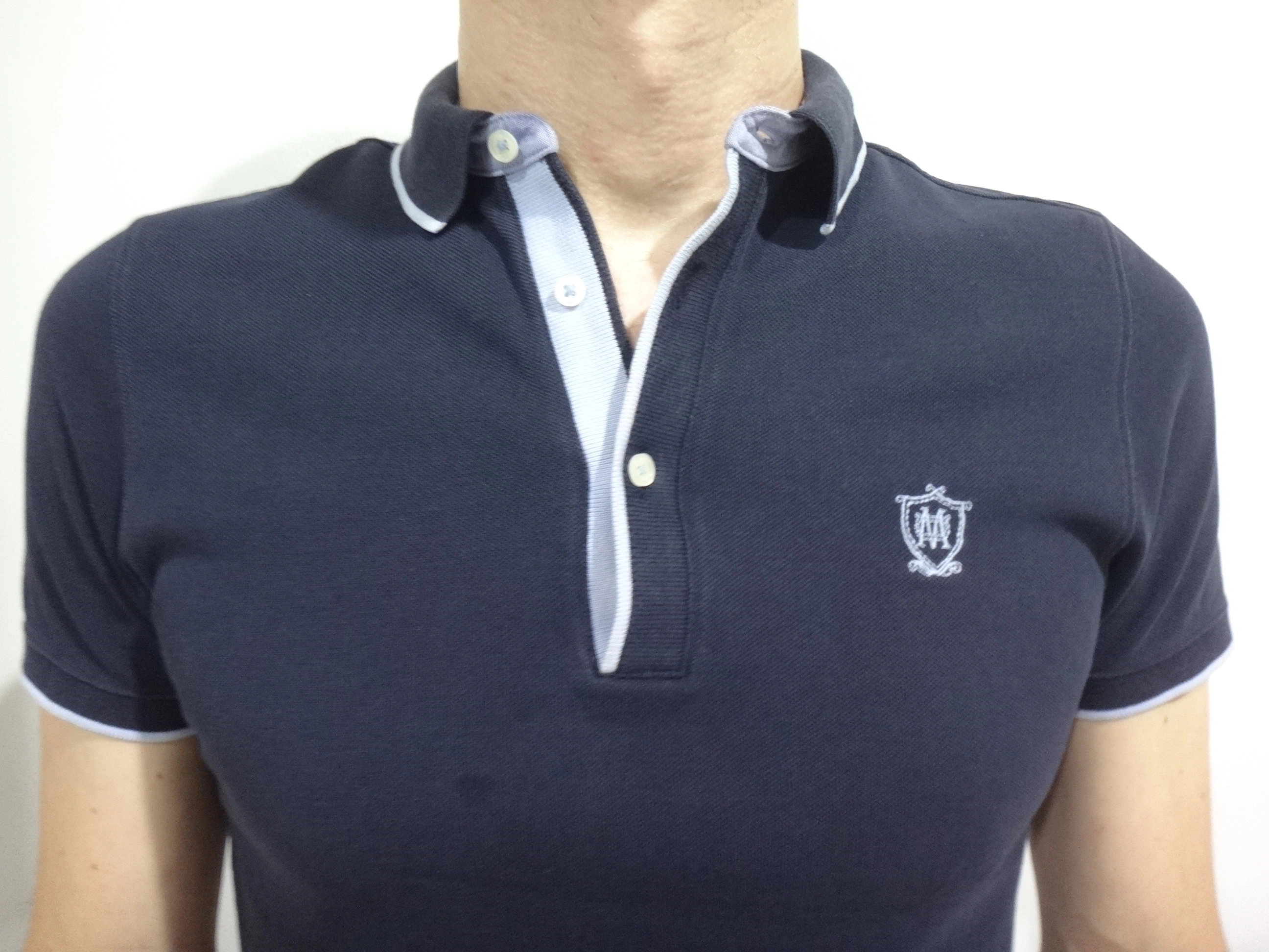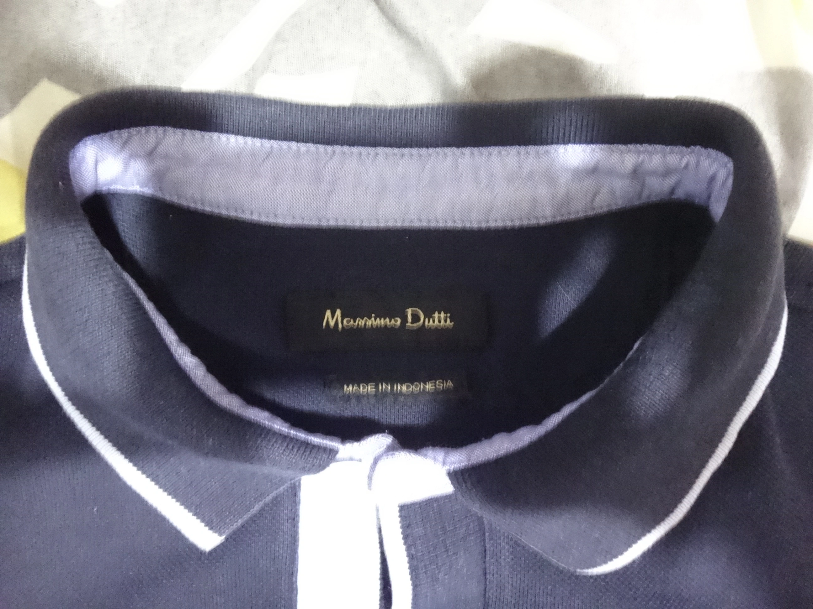 Massimo Dutti Men's Small Navy Blue + Light Blue Trim Polo Shirt.