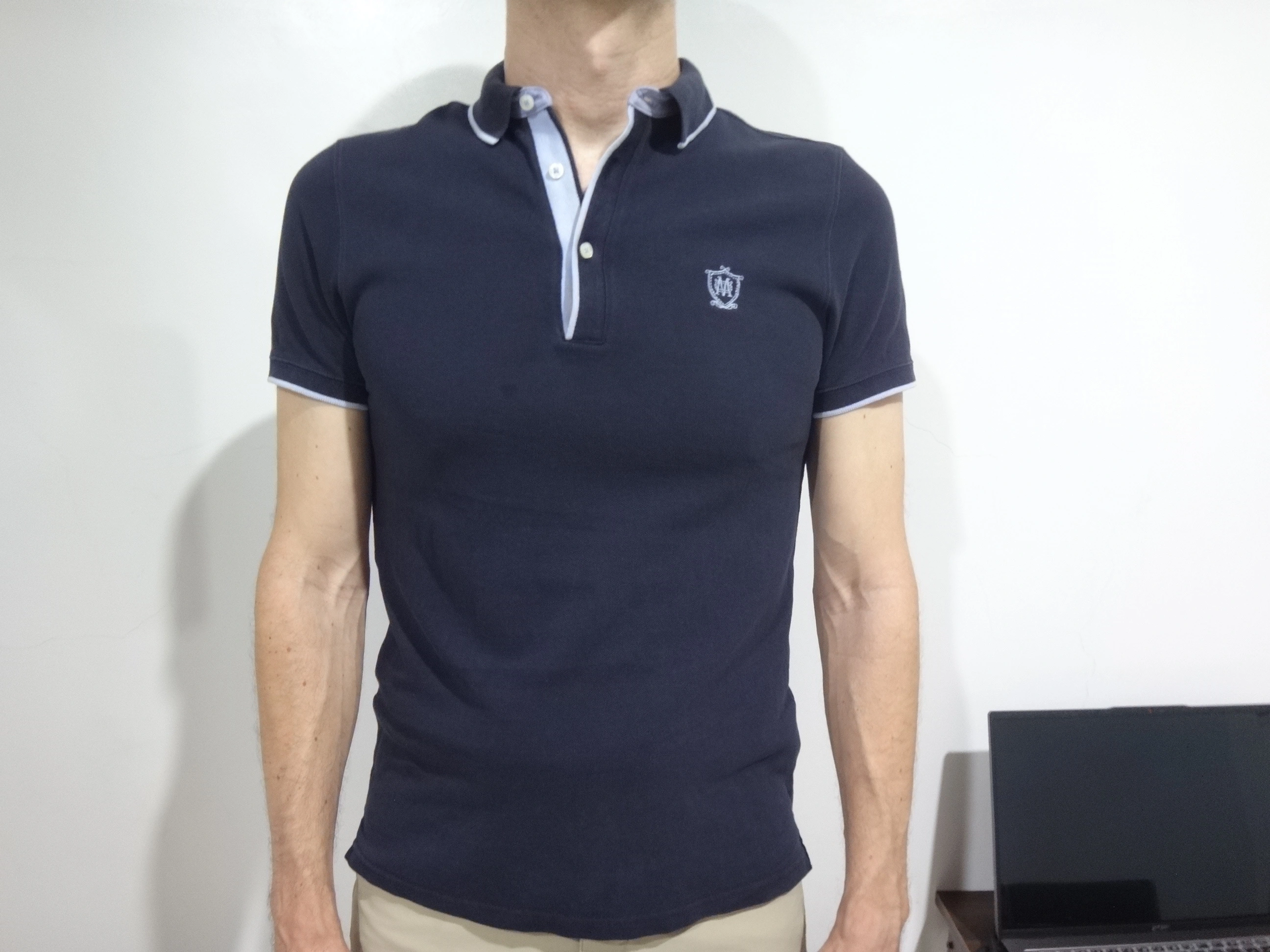 ✅♻️Massimo Dutti Men's Small Navy + Light Blue Polo Shirt