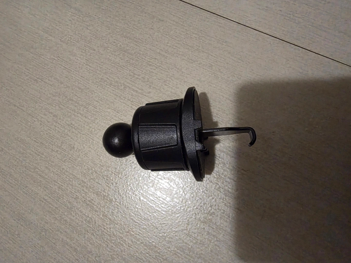 This is a black car phone mount designed for air vent use. It features a universal grip for most smartphones. The ball joint allows for easy angle adjustment.