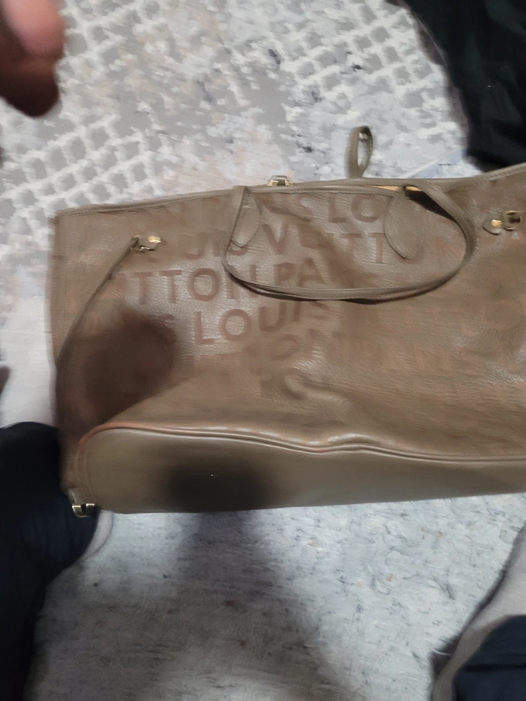 This is a Louis Vuitton tote bag. It's a large, brown leather bag with the signature LV monogram pattern embossed all over it. It has two top handles and gold-tone hardware. This bag is perfect for carrying all your essentials in style.