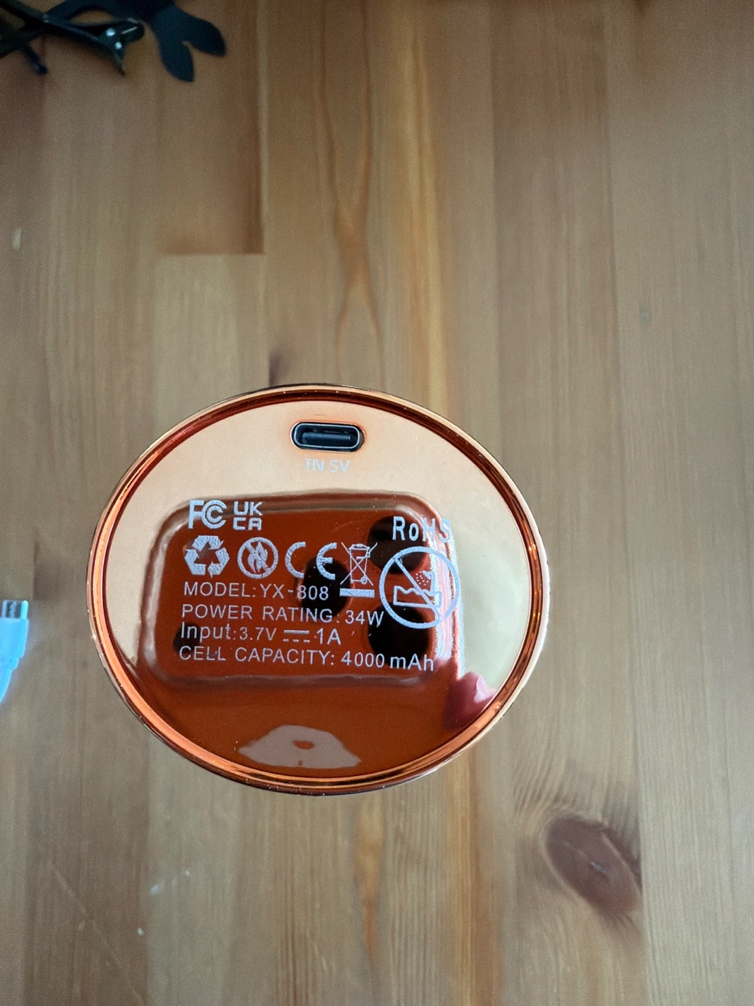 This is a portable automatic hair curler with a 4000 mAh cell capacity. It's USB rechargeable and includes a charging cable. The power rating is 34W with an input of 3.7V-1A. This device makes curling hair quick and easy on the go!
