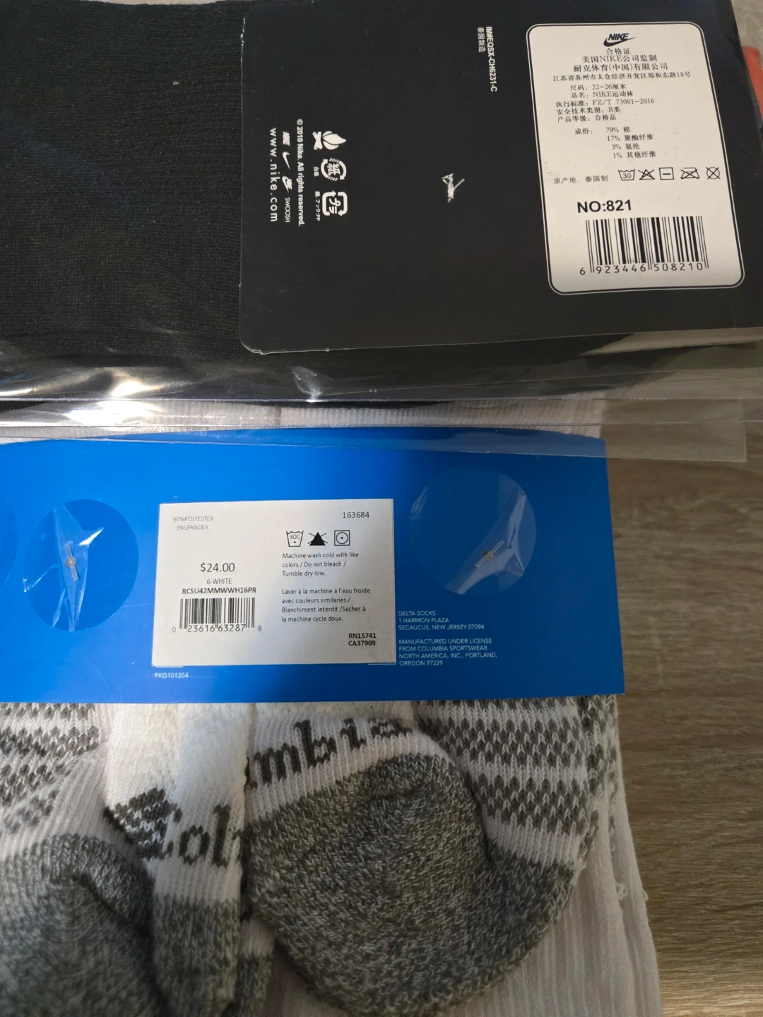 6 Brand new Columbia socks + 3 brand new Nike socks.