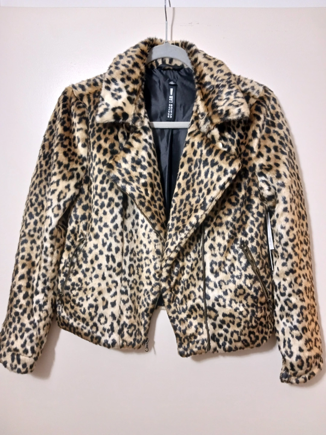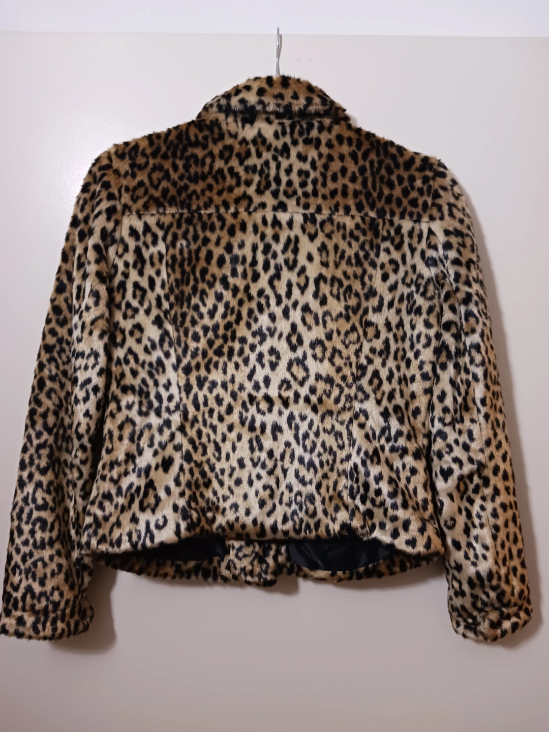 Leopard print pattern. Features a notched collar. Front zipper closure. Side zipper pockets. With this jacket, you can create many new stylish outfits easily.