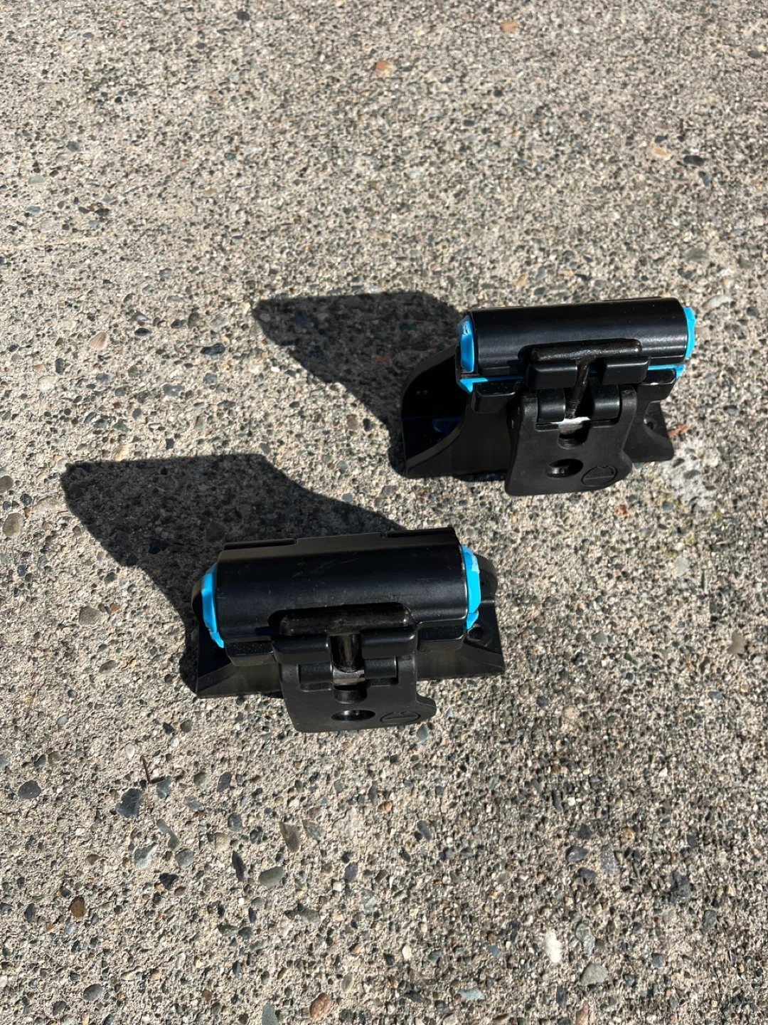 This is a set of two black RockyMounts DropTop locking bicycle mounts. Black anodized metal construction. Ideal for securing regular or e-bikes in a van, RV or a pickup truck bed. These were mounted once and never used. Lock tumblers included. Essentially brand new condition. Priced to sell, two mounts for the price of one.