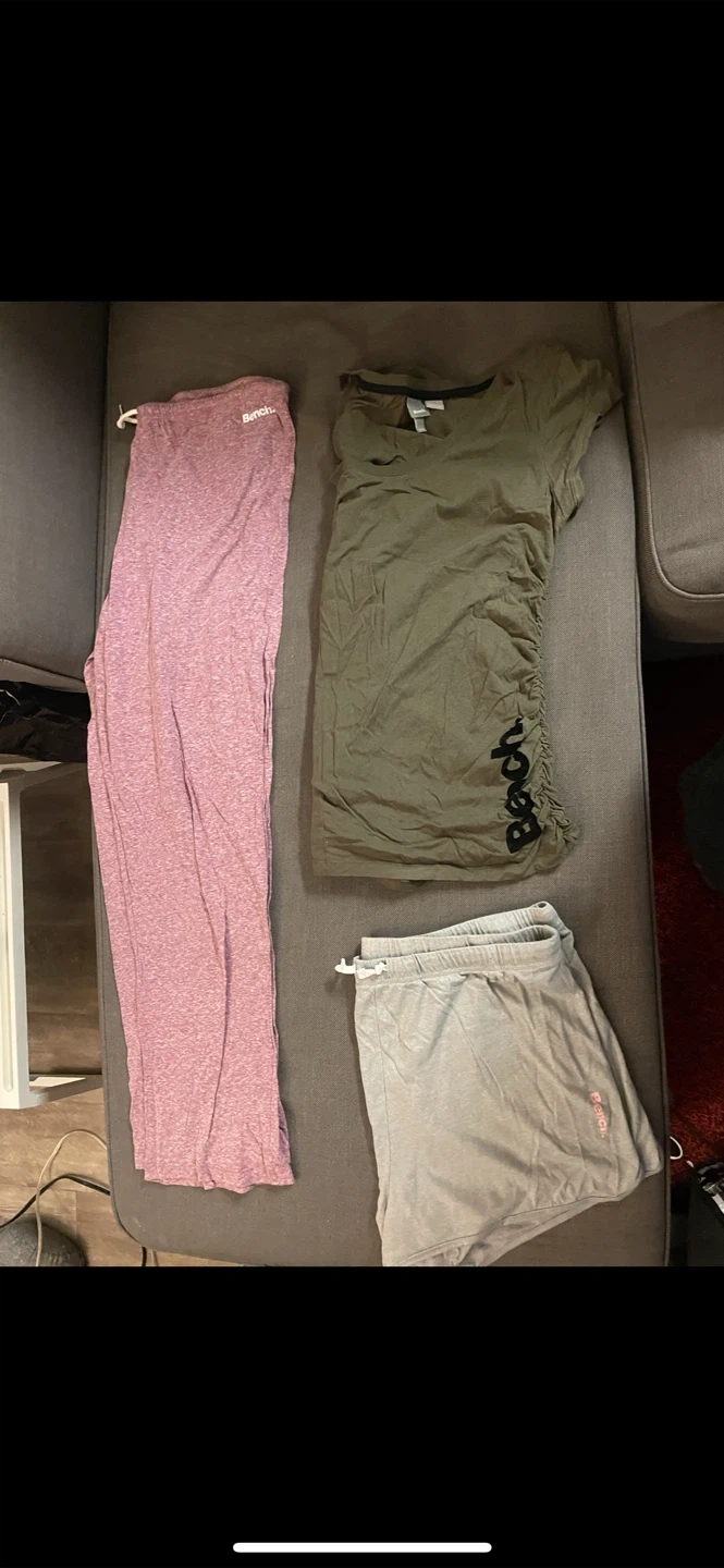 Bundle of Bench athleisure wear including tops, leggings, and shorts. Various colours and styles.some slightly worn others brand new never worn