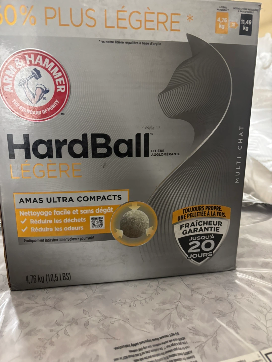 This is Arm & Hammer HardBall Light litter in an ultra compact formula. It's designed for easy cleanup and odour control, offering freshness for up to 20 days. Perfect for multi-cat households.