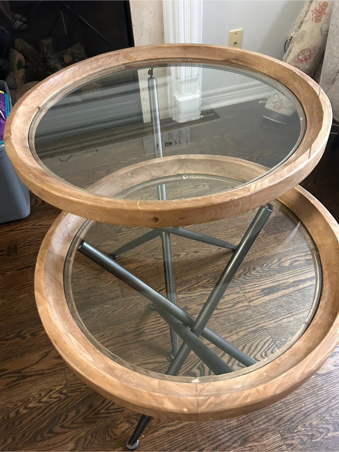 Round Glass and Wood Nesting Side Tables