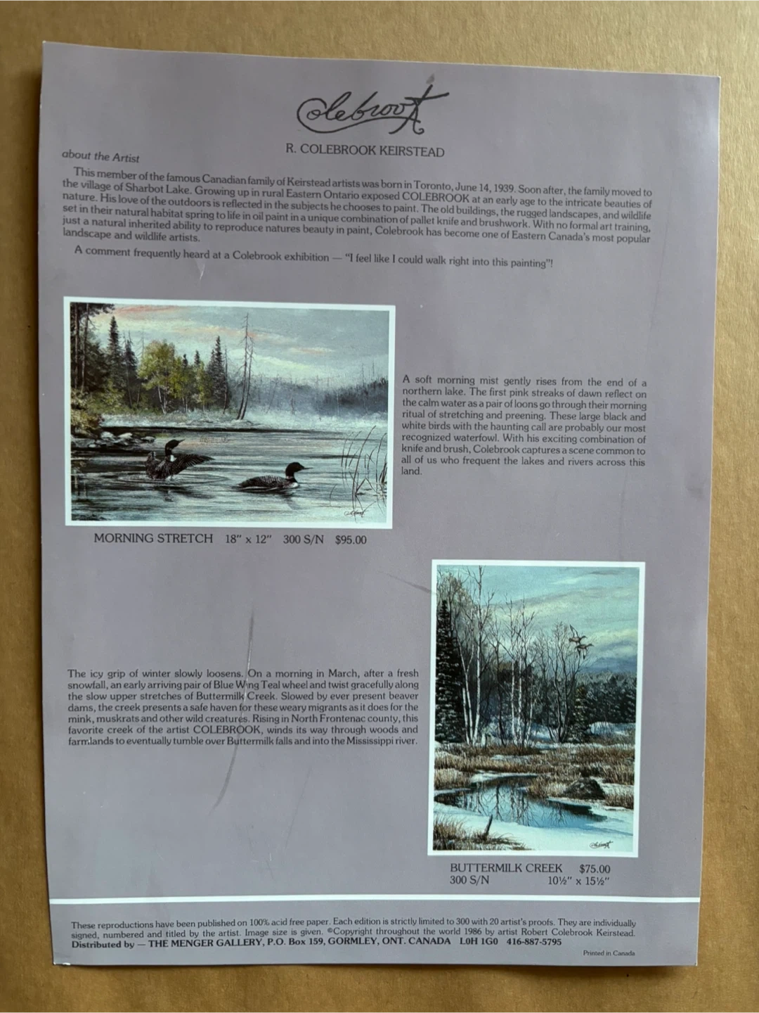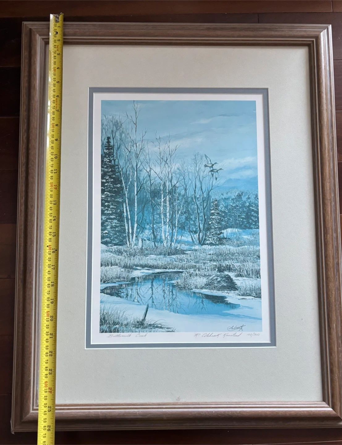 Selling a framed print by Canadian artist R. Colebrook Keirstead titled "Buttermilk Creek". The print is faded so main value is the lovely wood frame.