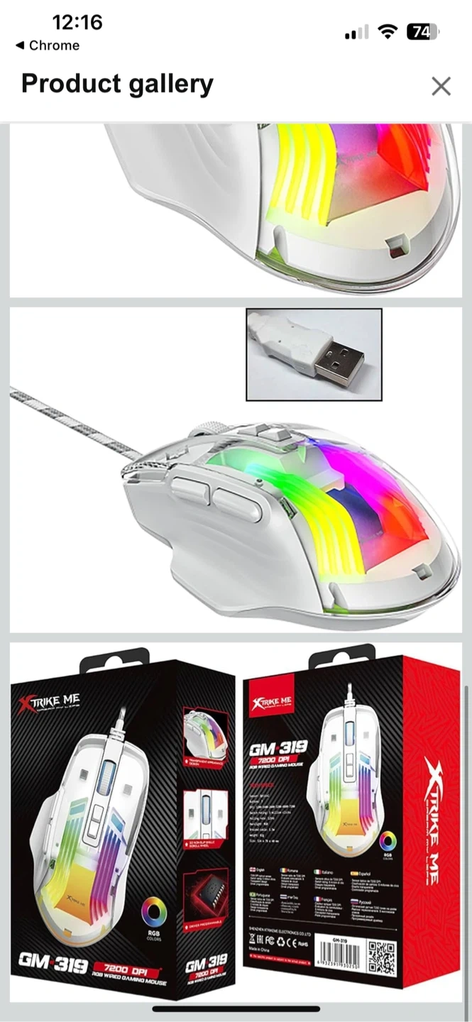 Xtrike Me GM-319 wired gaming mouse with RGB lighting. It has 7 buttons and 7200 DPI optical sensor. Polling rate is 125Hz and it's compatible with Windows. Weight is 82g. This mouse is great for gaming sessions!