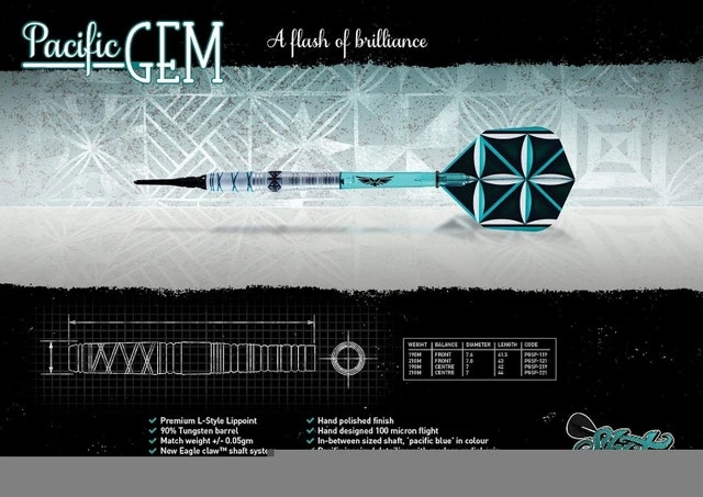 Brand new Pacific Gem 90% Tungsten soft tip dart set (21g) in original packaging. Professional quality, center-weighted, and made in New Zealand. Great for all skill levels or as a gift. Can be converted to steel tip with conversion points (not included). Price is firm, serious buyers only, local pickup in Richmond Hill only. Also have Unicorn Dart Case, Target Playmate wallet, Bulls Keycord Dart Holder Wallet, Harrows Black Box Molded Case, Cosmo / L-Style fit shafts or flights, variety of stems/shafts, flights, Target Titanium steel tip conversion points + other accessories.