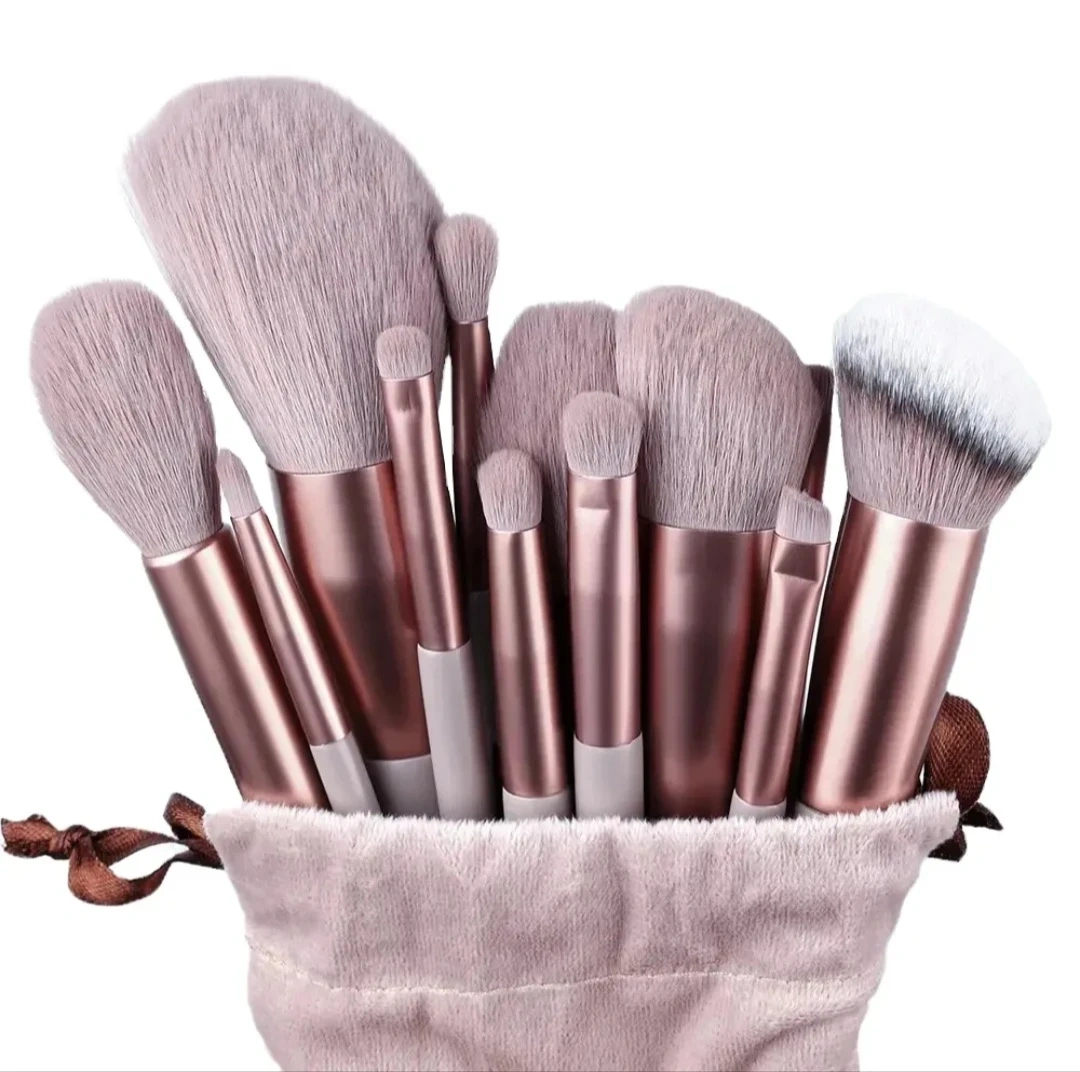 This makeup brush set includes 13 brushes with soft synthetic bristles. It comes with a convenient carrying pouch for storage. A full set for various makeup application needs!
