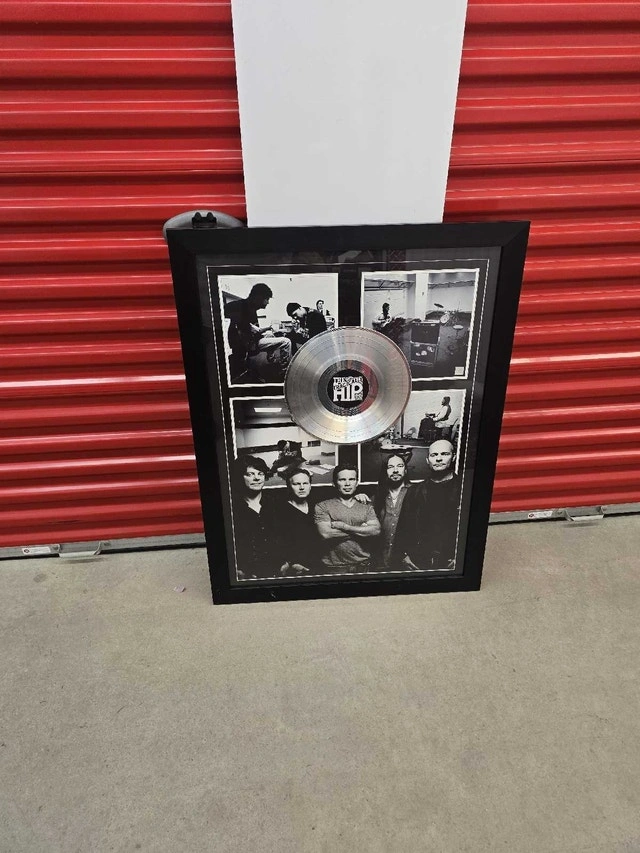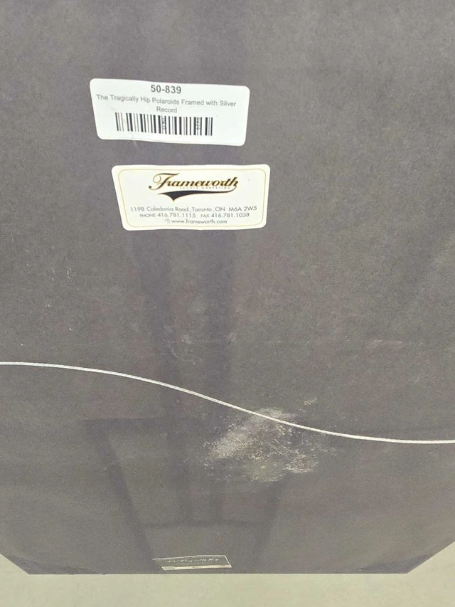 Own a piece of Canadian rock history with this framed Tragically Hip memorabilia, featuring a silver record and iconic band photos. This piece is in good condition, with dimensions of approximately 40 inches in height and 32 inches in width, ready to hang and display proudly. It includes a certificate of authenticity from Frameworth Music. The item is pre-owned, adding to its vintage charm. Framed with silver record, includes band photos, Certificate of Authenticity. Dimensions: Approximately 40" x 32". Based on similar Tragically Hip memorabilia, a fair price would be around $450 CAD. If you're reading this, yes, it's still available!