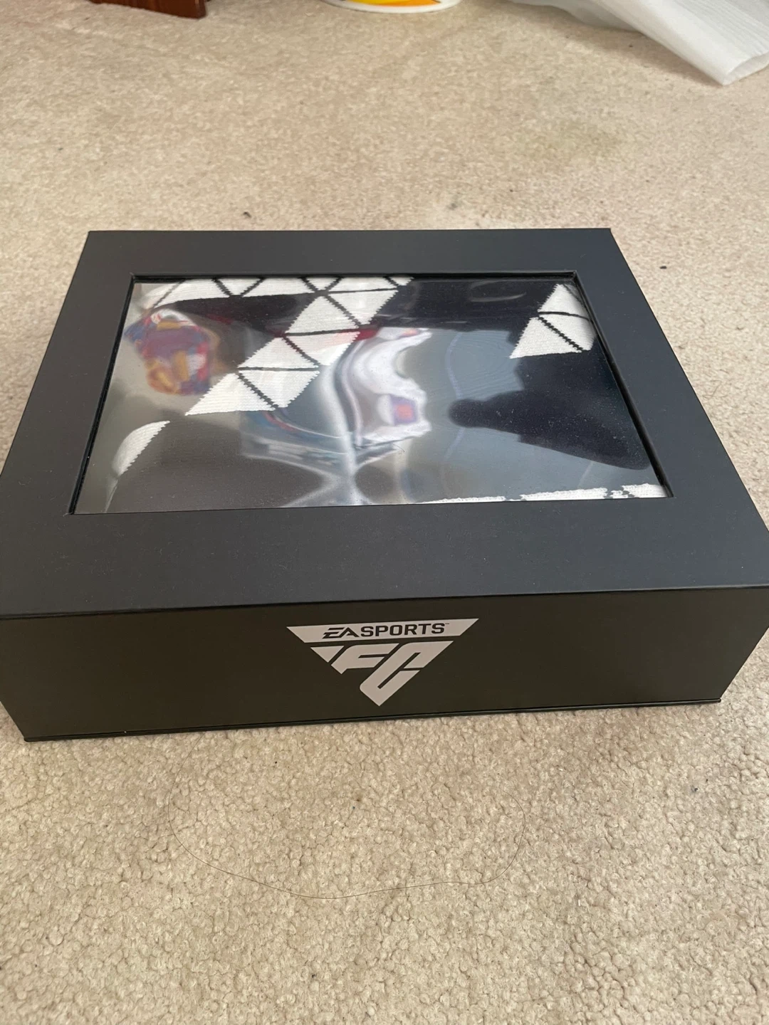 19Selling a brand new EA Sports FC scarf, still in its original box! The scarf features a stylish black and white design with yellow fringe. Included in the box is a pin. A great accessory for any EA Sports FC fan