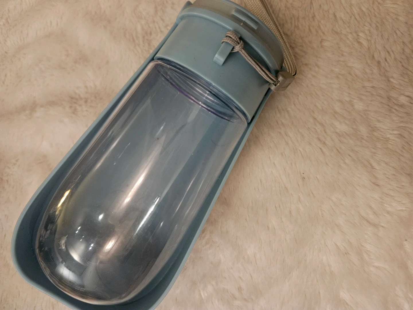 I'm selling a portable dog water bottle in blue! It's in great condition and perfect for walks or hikes with your furry friend. It's lightweight and easy to carry, making it convenient for on-the-go hydration for your pet