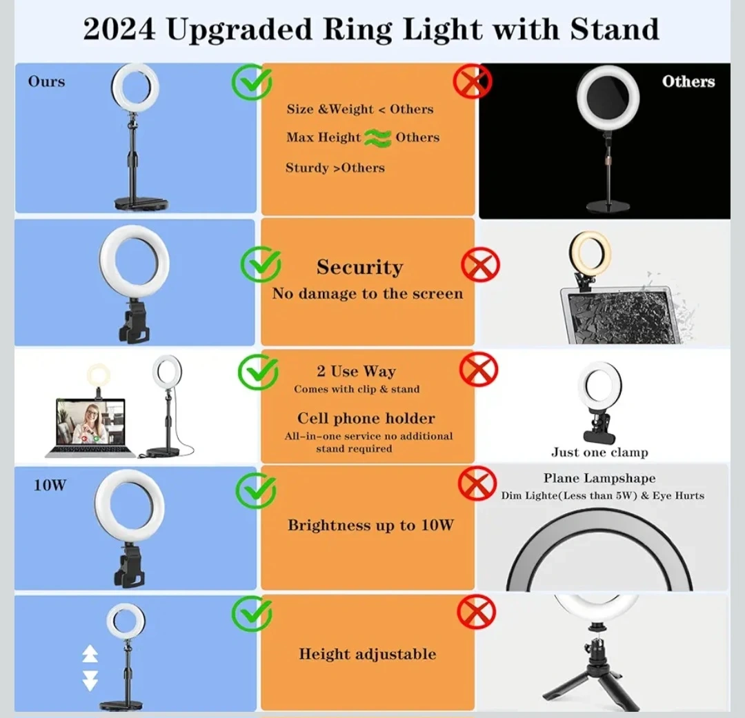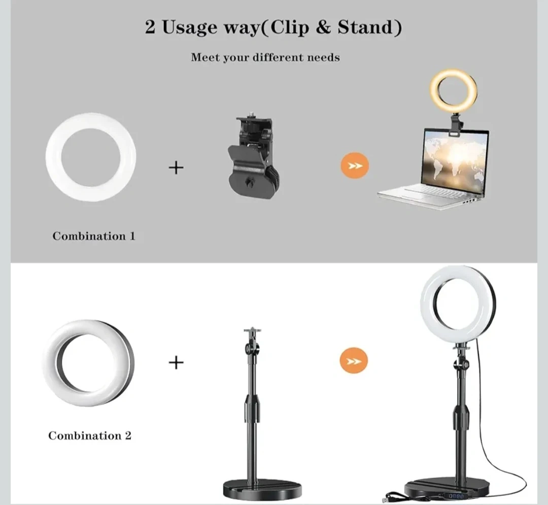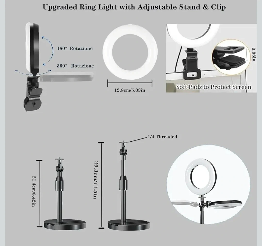Upgraded Ring Light with Adjustable Stand & Clip