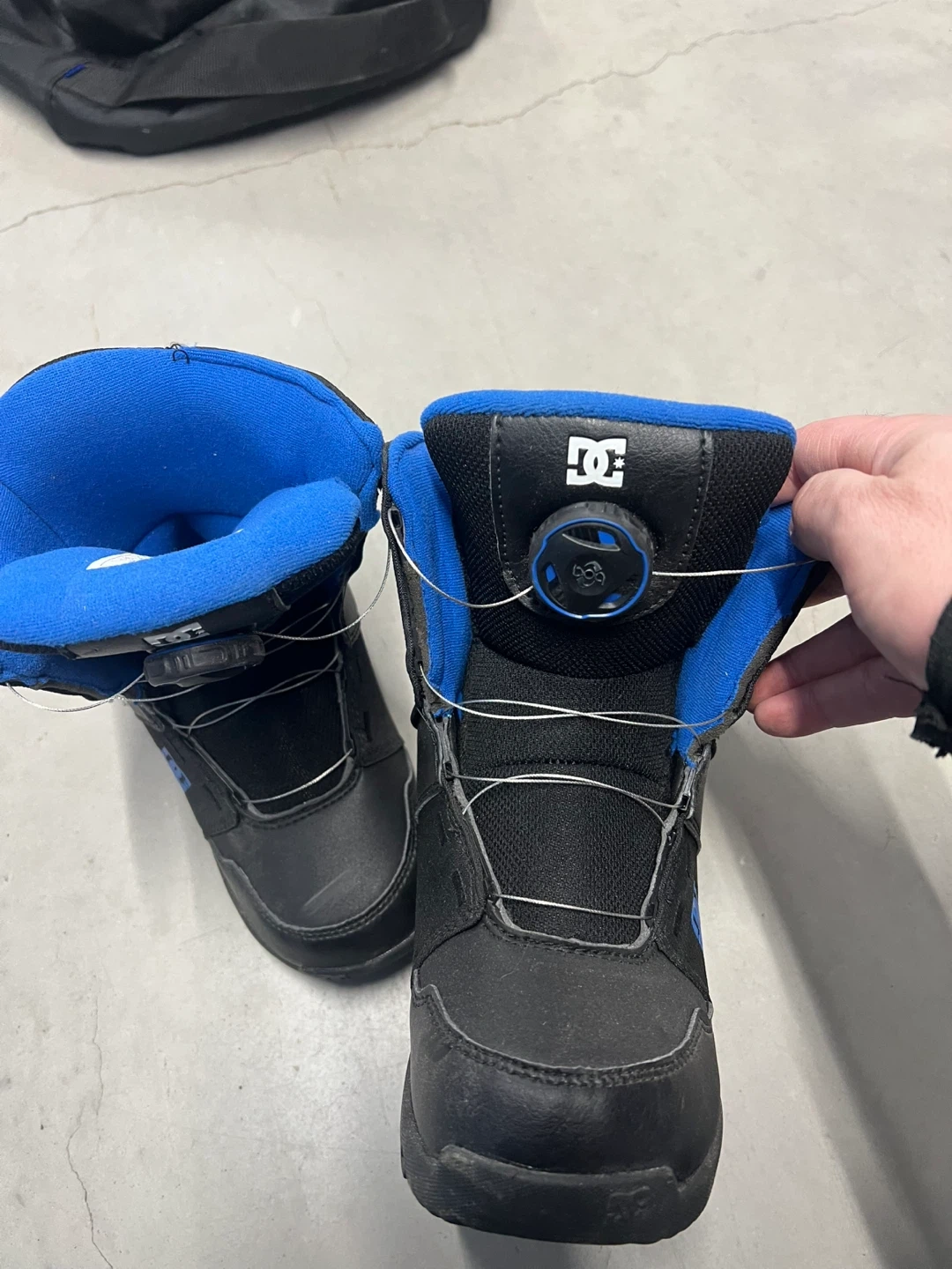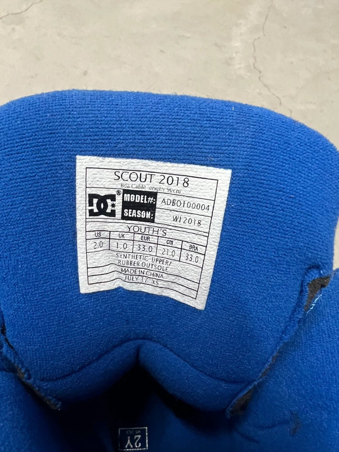 Selling a pair of DC Scout youth's snowboard boots. These are a size US 2.0 and in good condition. They feature a BOA cable system for easy tightening. Perfect for hitting the slopes!