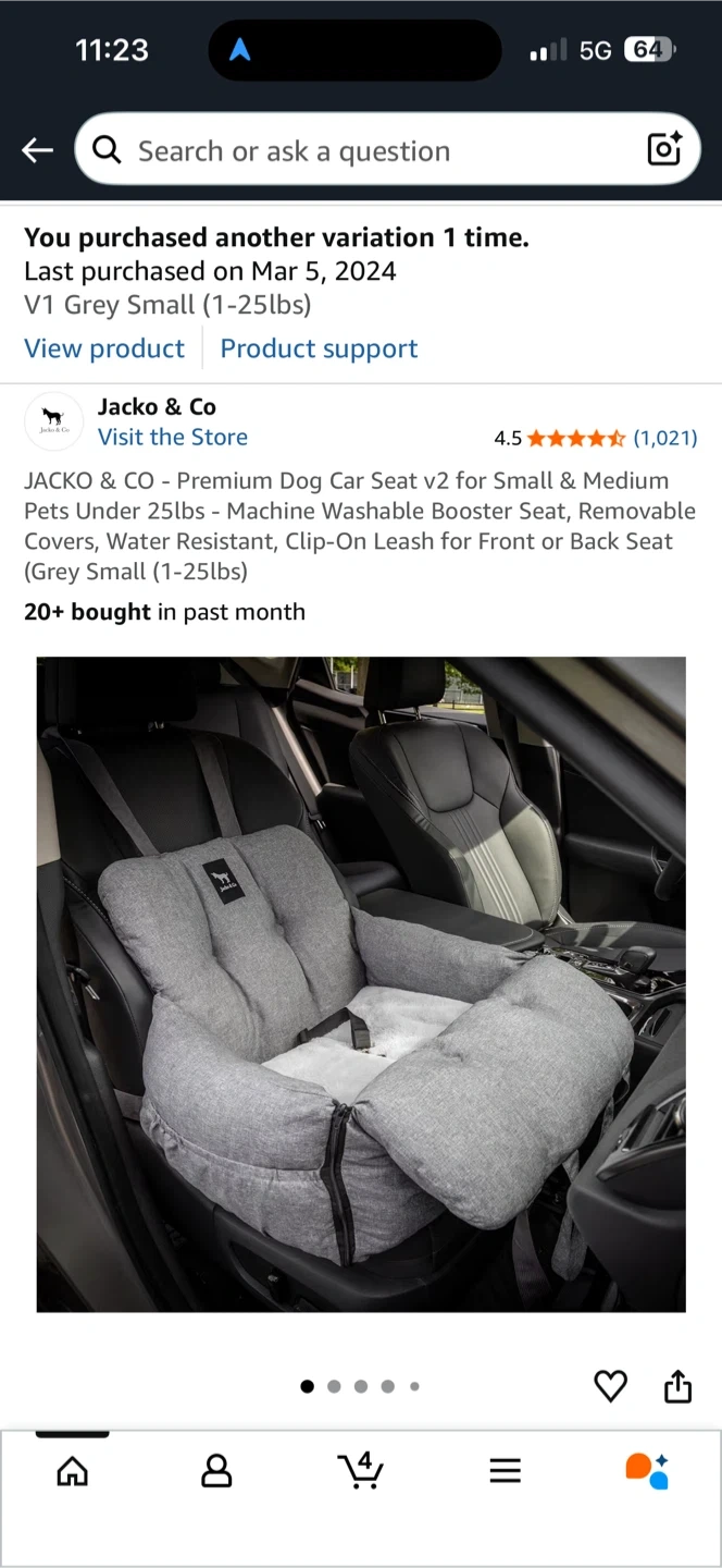 This JACKO & CO dog car seat is designed for small pets up to 25lbs. It's a machine washable booster seat with removable covers. The seat is water-resistant and includes a clip-on leash for added security. It's suitable for front or back seat installation. Never been used. Has little stain just need to be washed, was on the stock room the whole time.