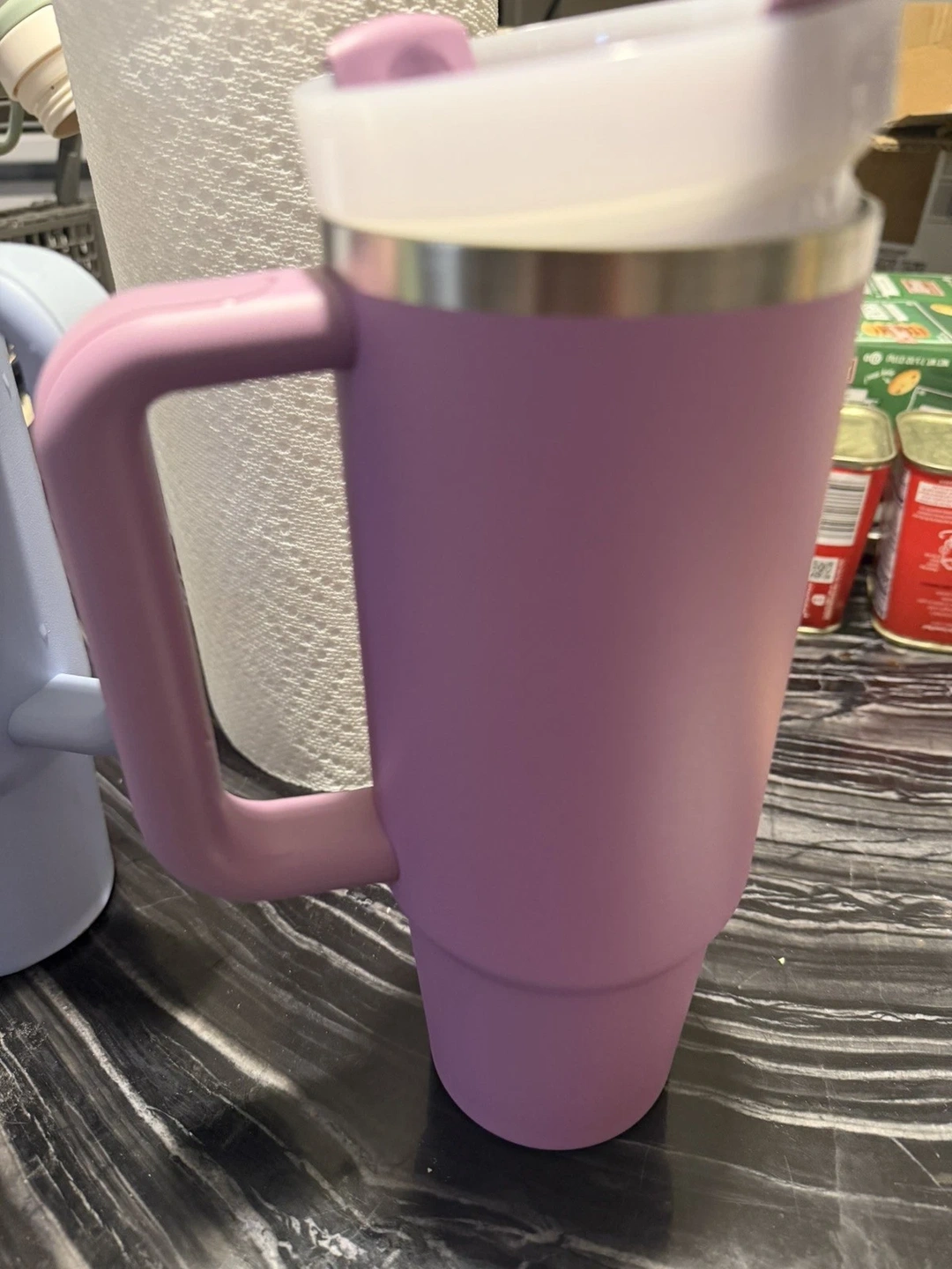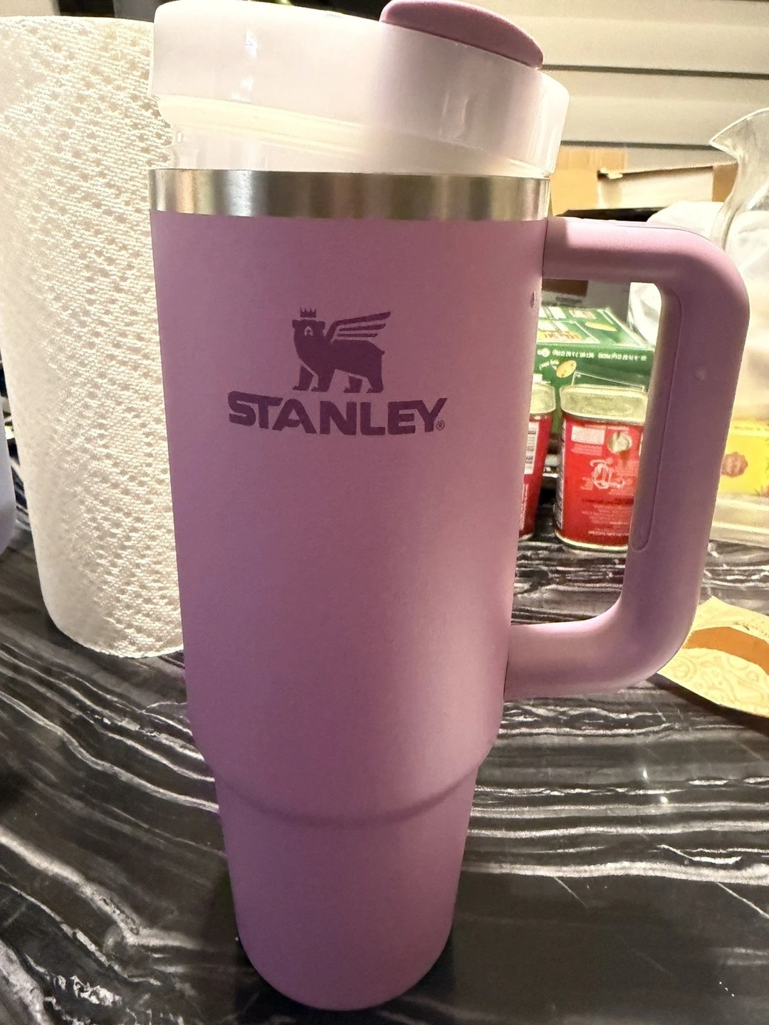 This is a new Stanley Quencher H2.0 Flow State tumbler in the color Lilac. It's a 30 oz tumbler, perfect for keeping drinks hot for 7 hours or cold for 11 hours. Made from stainless steel and plastic, it features a handle and a straw lid. Hand wash only. Great for adults, teens, boys, and girls.