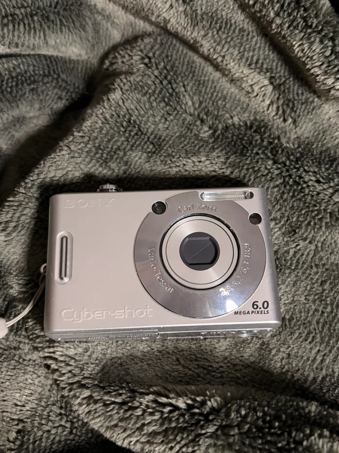 This is a silver Sony Cyber-shot DSC-W30 digital camera. It features a 6.0 megapixel Carl Zeiss lens. Used a lot in summer just don’t reach for it anymore. Comes with batterie.