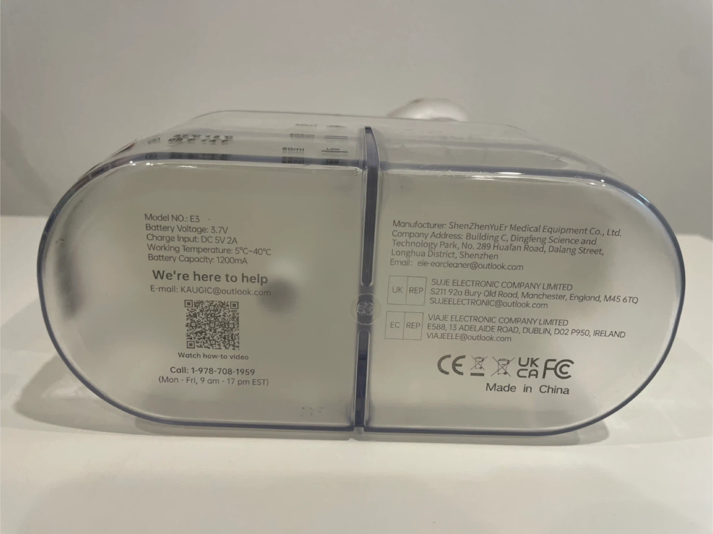 Ear irrigation equipment in great condition! Never used it. Features include power, soft, normal, pulse, and strong settings. It also has a temperature guide for cold, ideal, and hot settings