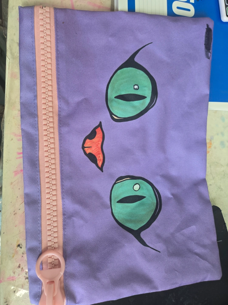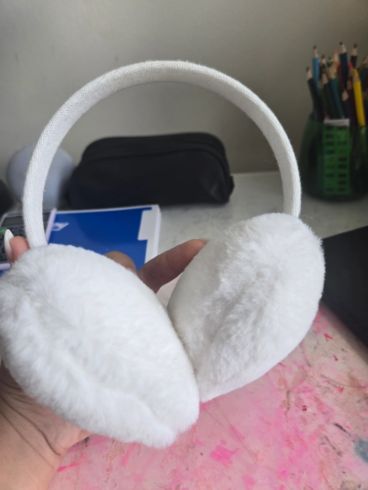 A few items for sale including earmuffs, a notebook and a pencil case