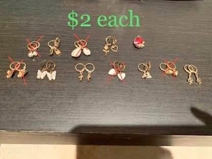 Earrings, the ones with ❌ on them are gone. $2 each, cash only Pick up near Victoria Dr. & 45th Ave. Vancouver