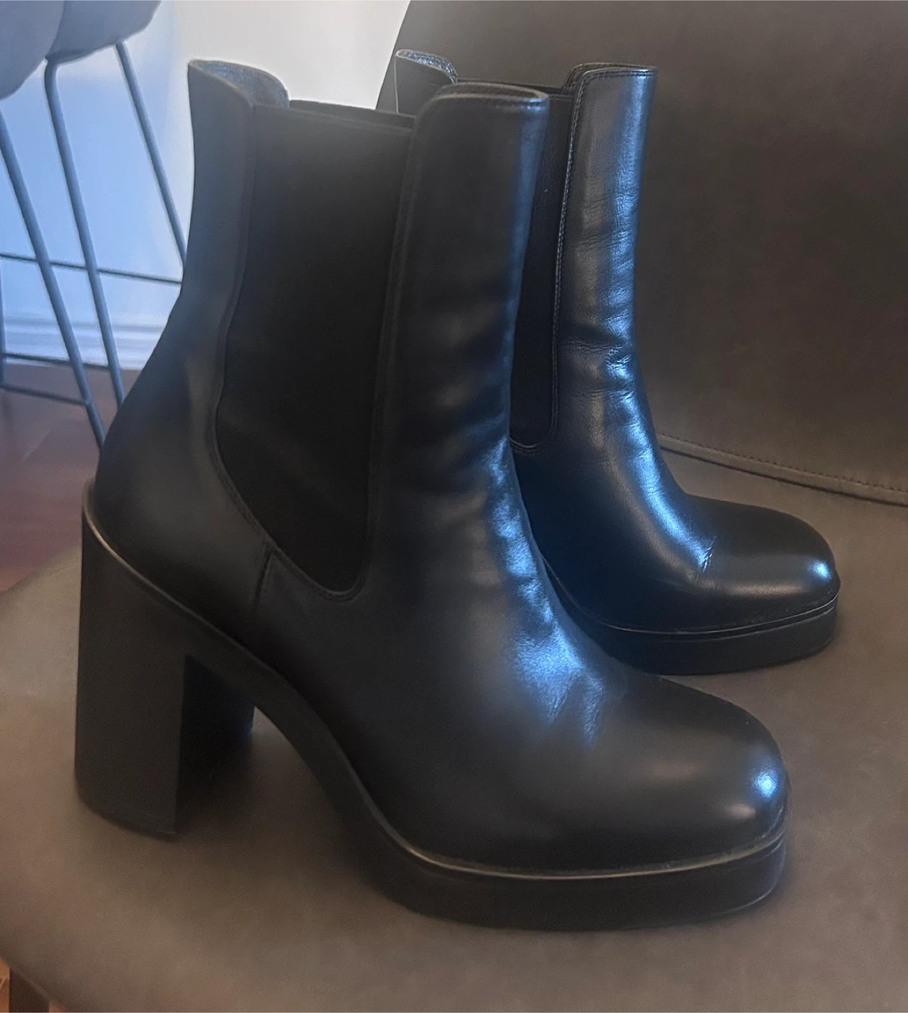 Stuart Weitzman Bethenny 80 Chelsea boots in black leather.