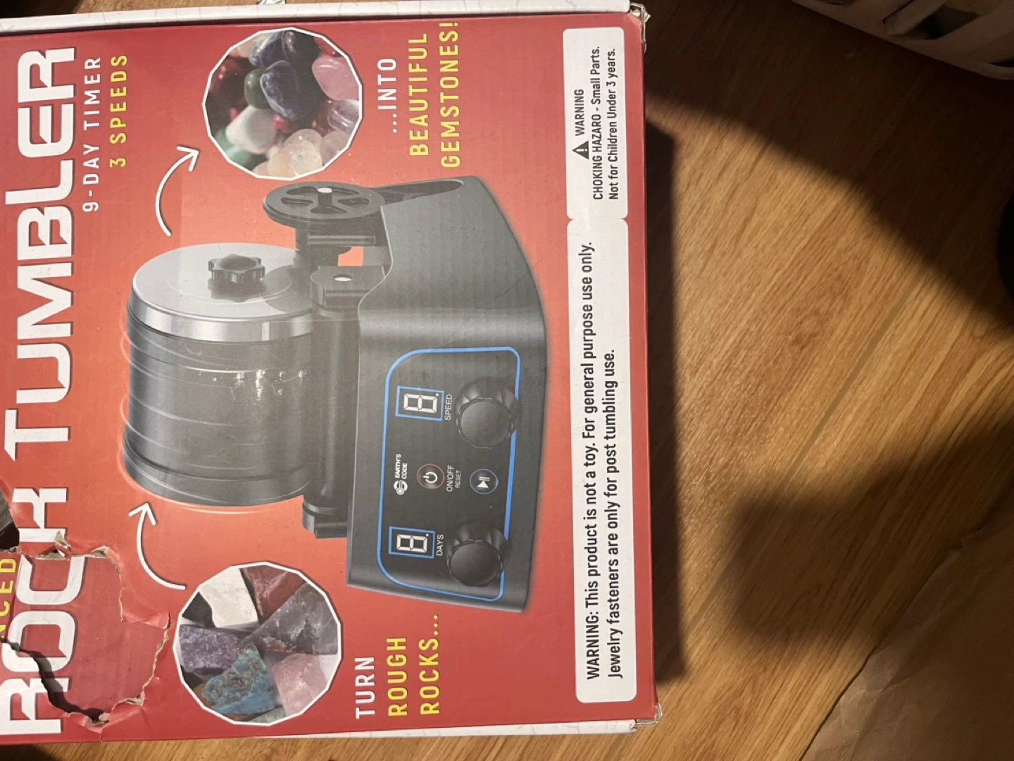 64Rock tumbler. Includes all grit and plastic pellets. 9-day timer, 3 speeds. Instruction manual included. Great for polishing rocks and gemstones.