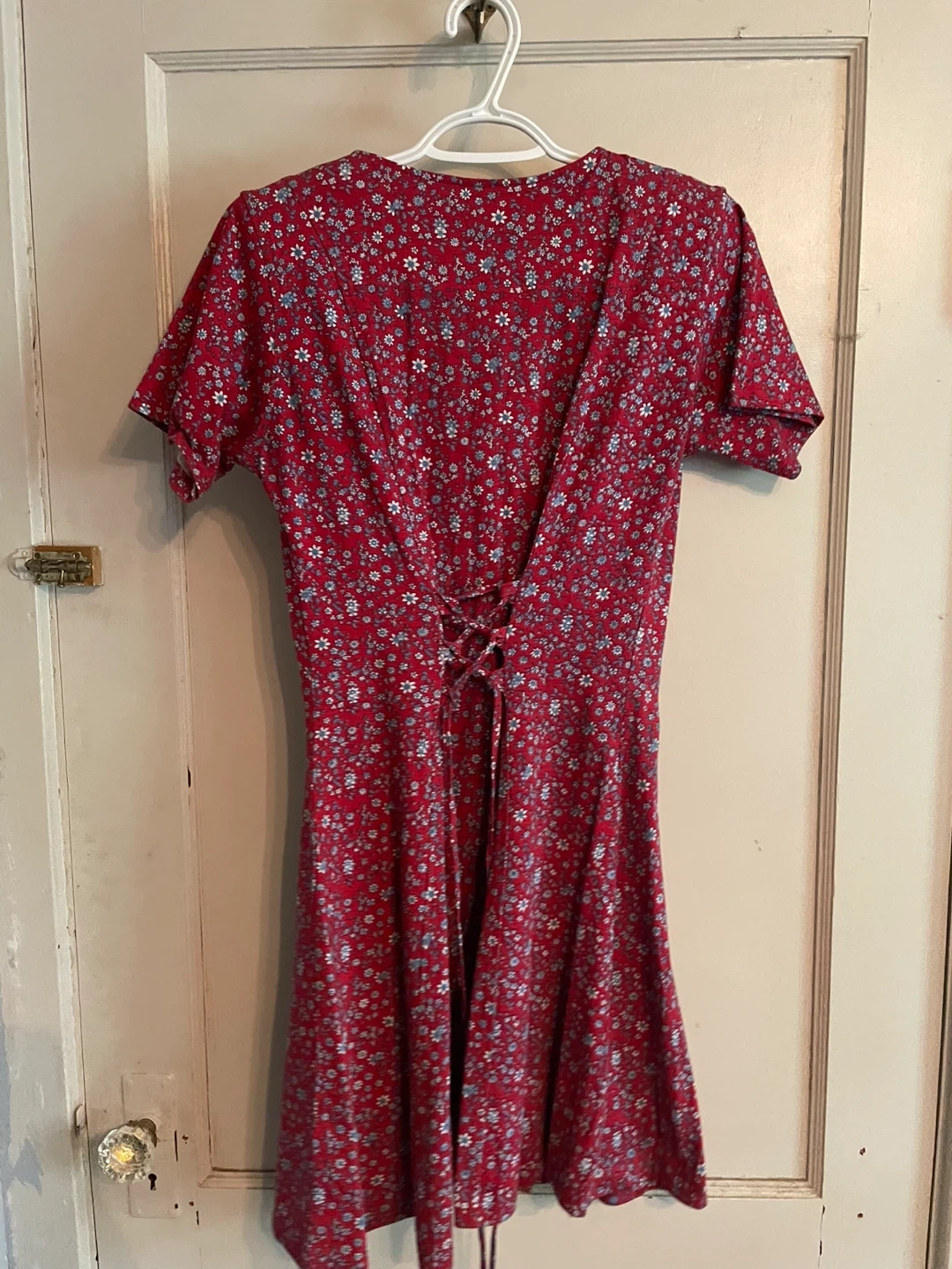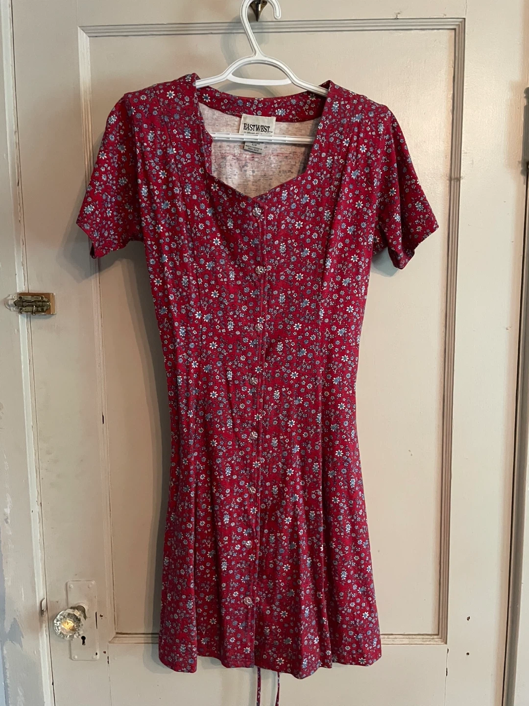10This is a cute red dress with a floral pattern from East West. It has short sleeves and a tie in the back. Perfect for spring or summer!