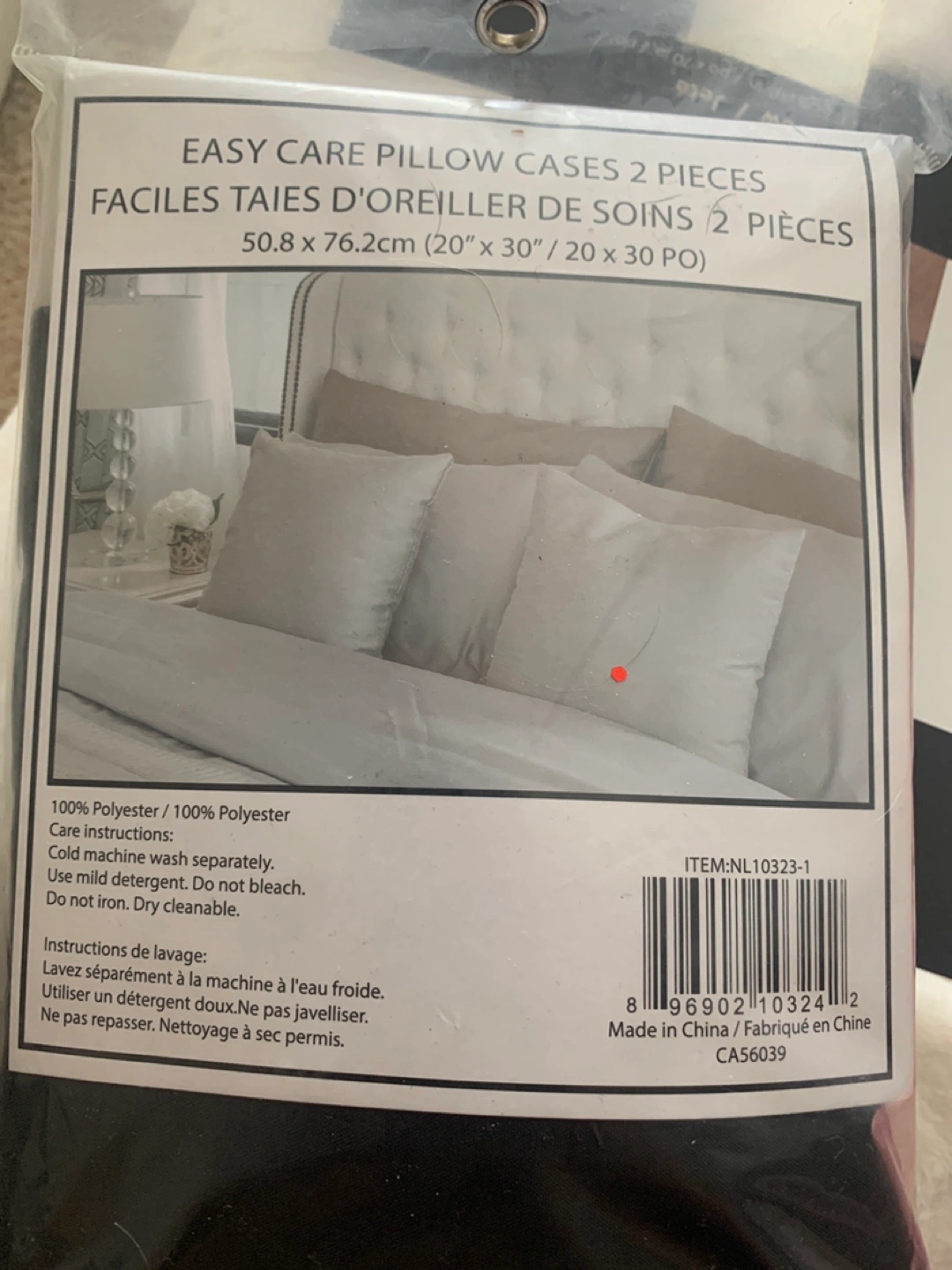 Selling a set of two easy-care pillowcases. They are sized at 50.8 x 76.2cm (20" x 30"). Colour: black
