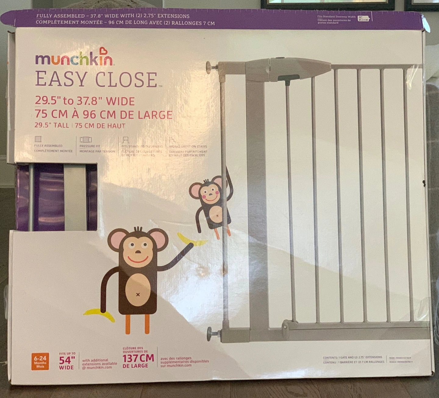 20Keep your little one (or pet!) safe with the Munchkin Easy Close Baby Gate — one of the most trusted gates for homes with babies and toddlers. ✔ Adjustable width: fits openings 29.5"–35" (75–89 cm) — expands up to 54" (137 cm) with extensions ✔ Height: 29.5" (75 cm) – perfect for stairs and doorways ✔ Pressure-mounted – no drilling or tools required ✔ Easy one-hand open & close system – super convenient for parents ✔ Durable steel frame – strong, stable, and built to last ✔ Works great for babies (6–24 months) or small pets ✔ Includes 1 gate + 1 extension (2.75")