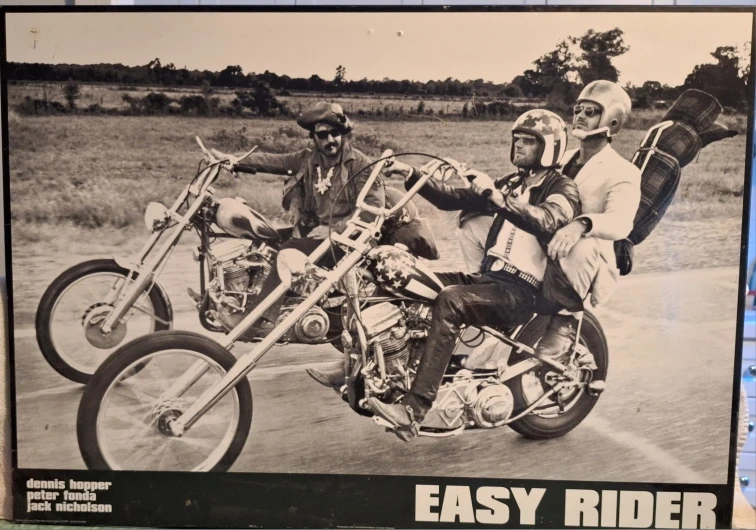 0Selling a poster of the classic movie Easy Rider, featuring Dennis Hopper, Peter Fonda, and Jack Nicholson. It's in good condition and would look great in any movie lover's home!