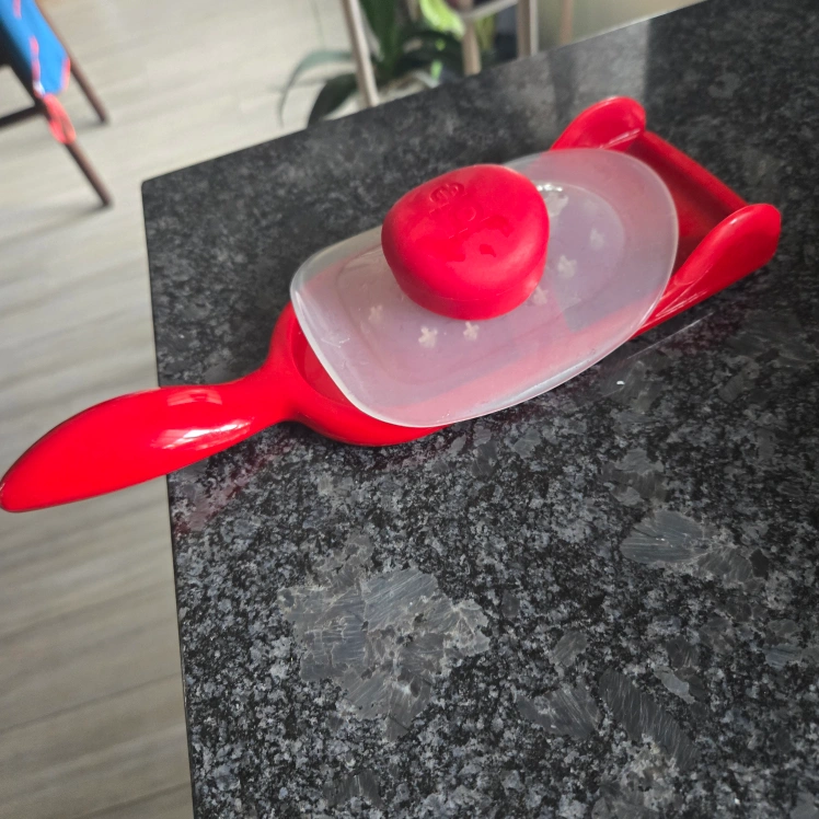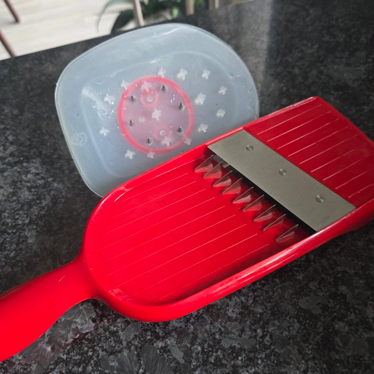 10Selling an Easy Slice Mandoline in red! It's in great shape and ready to help you make perfectly sliced veggies and more. This mandoline makes food prep a breeze